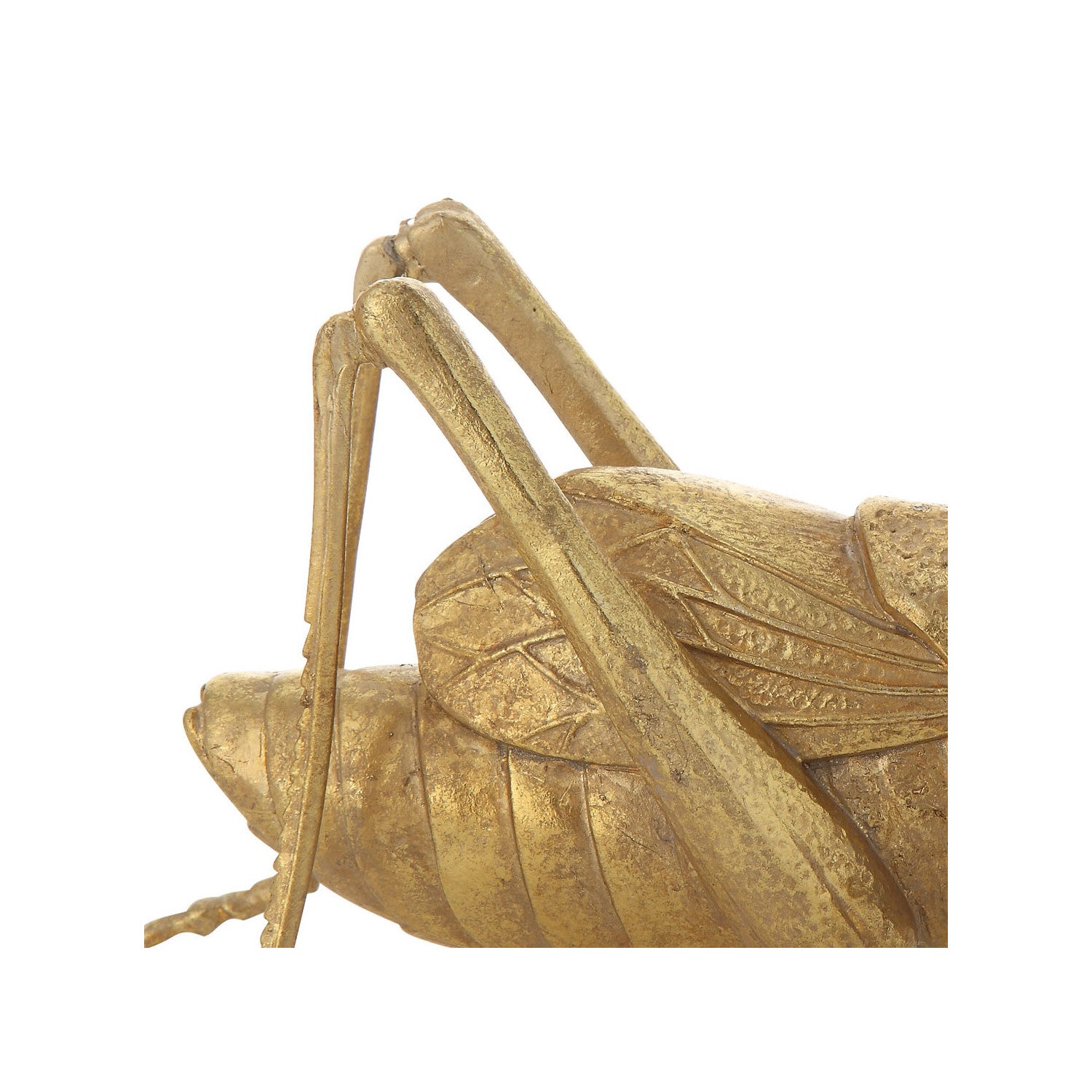 Interesting figurines are the spice that complete a room decor. They can be added to a shelf, placed on top of a mantel or set next to other objects. This gold cricket will be sure to add some spice to the room decor.
