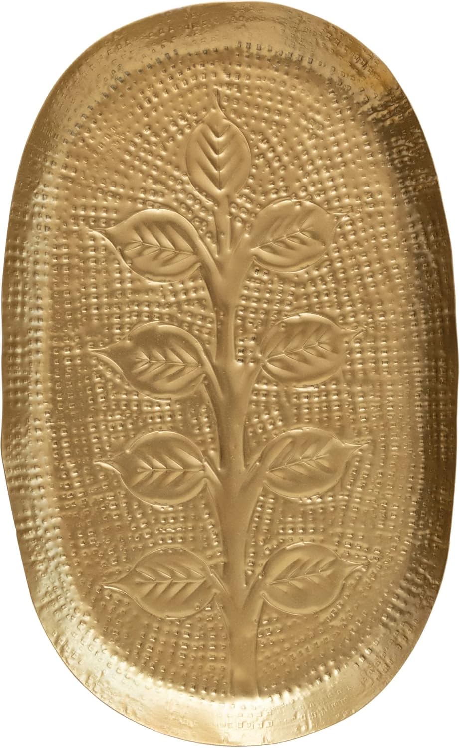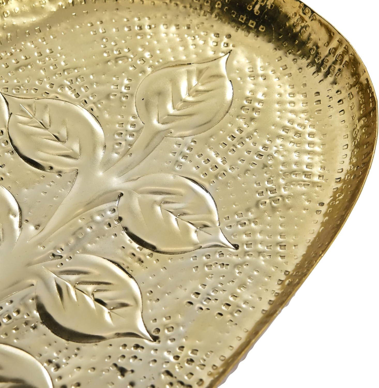 13"L x 8"W Decorative Debossed Metal Tray, Antique Gold Finish