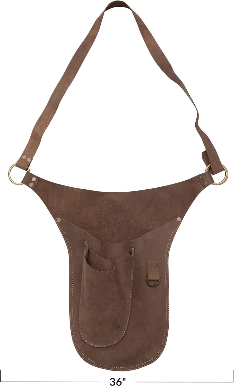 This rustic tool pouch features supple buffalo leather construction with an adjustable strap and 3 pockets.