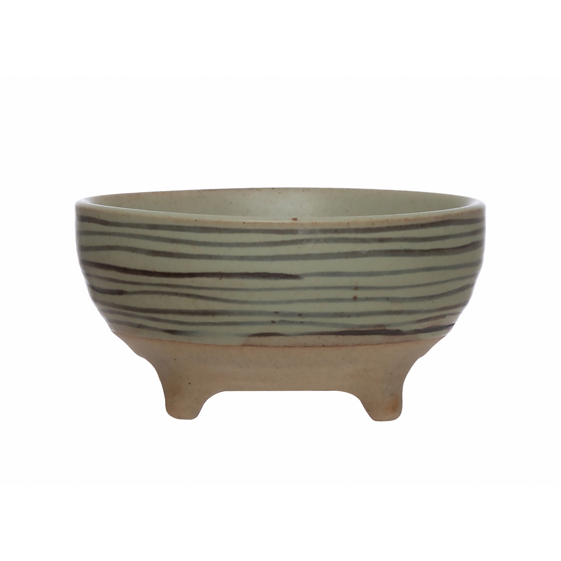 4-1/2" Round Stoneware Organic Stripped Footed Bowl