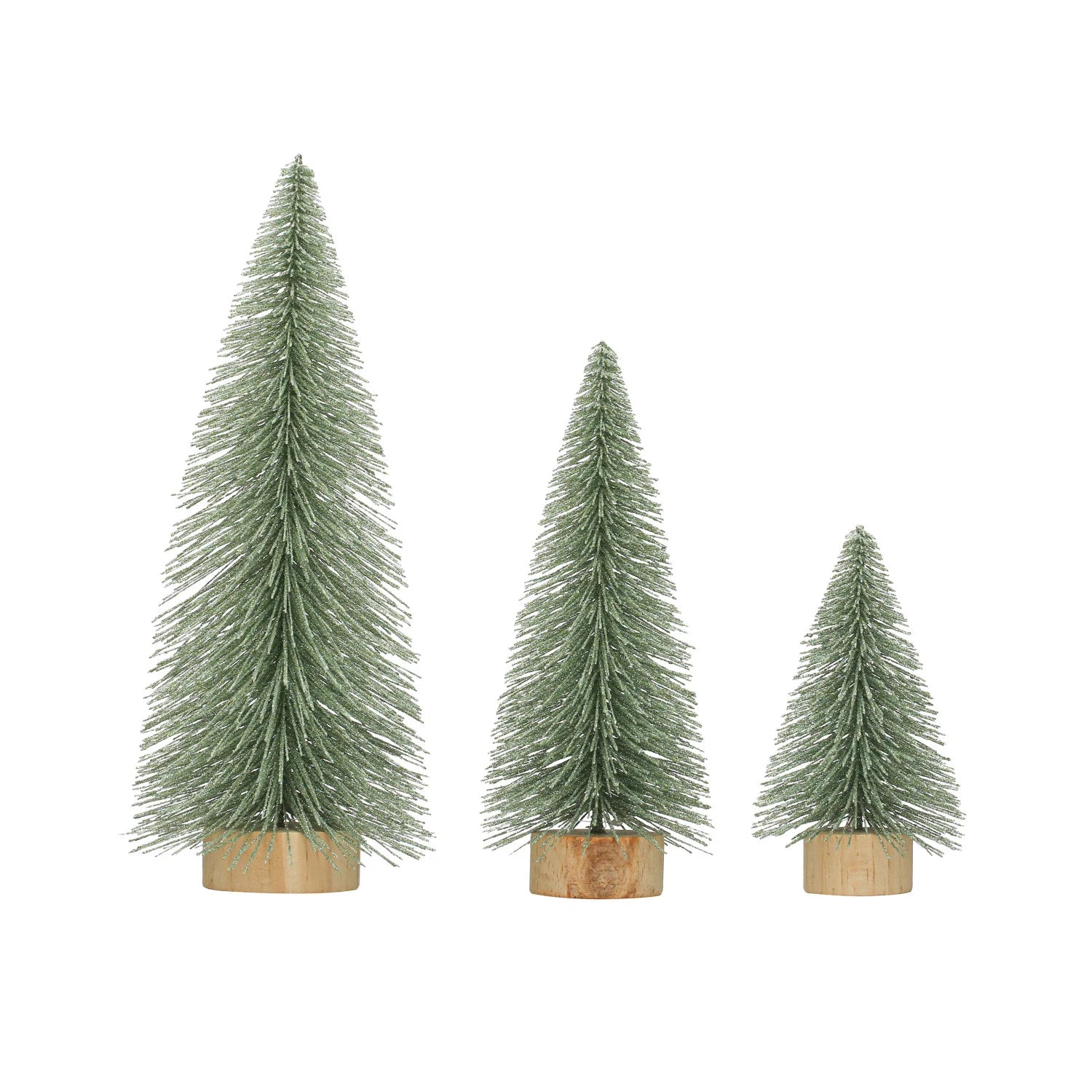Plastic Bottle Brush Tree w/ Silver Glitter & Wood Base