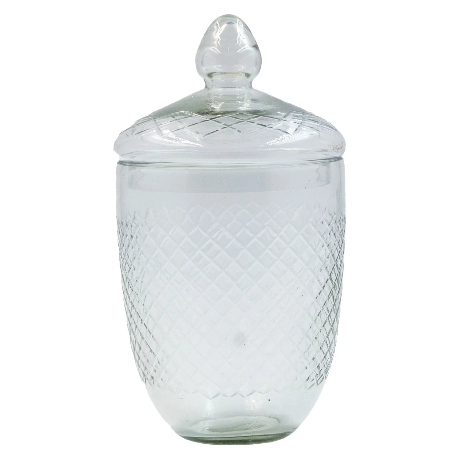 Cut Hand-Blown Glass Jar with Lid