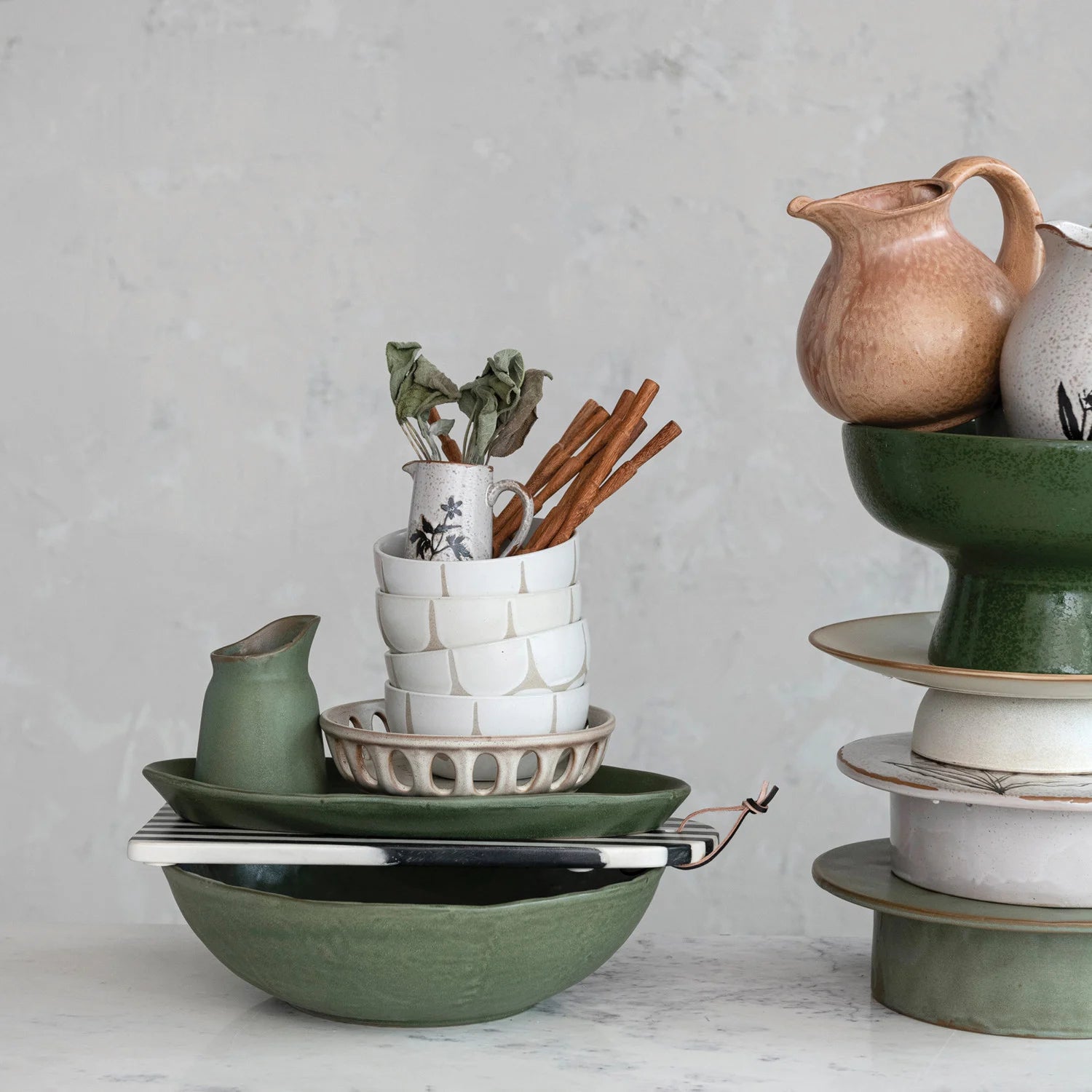 3-3/4"L x 2-1/2"W x 4"H 6 oz. Debossed Stoneware Creamer w/ Flowers, Reactive Glaze, White & Black (Each One Will Vary)