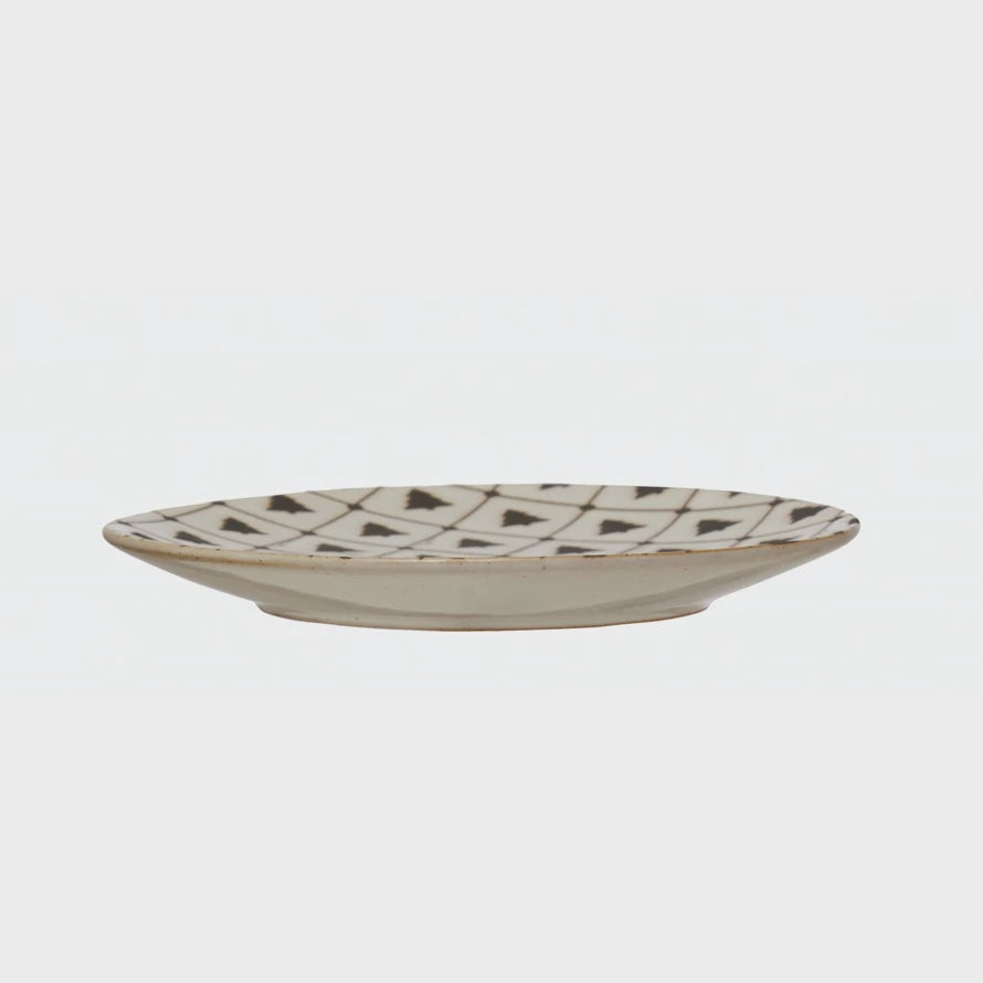 Stoneware Plate with Tree Pattern, Reactive Glaze, White and Black