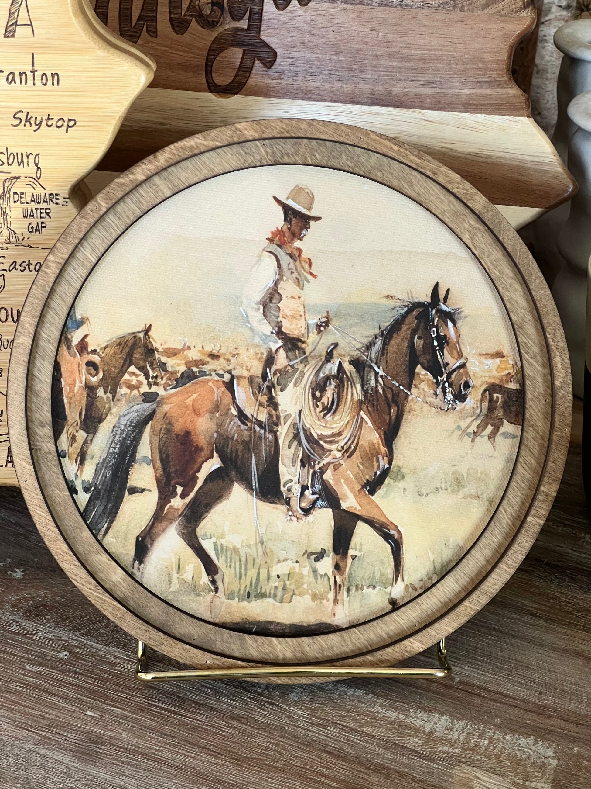 This unique artwork is printed onto canvas using high quality Canon pigment inks. The canvas is then mounted onto a wood backer. This piece has a double layered wood frame stained in a neutral Early American tone. This piece can be hung on a wall using an adhesive strip or it can sit on a shelf. This piece is designed and made start to finish in our shop in Twin Falls, Idaho.