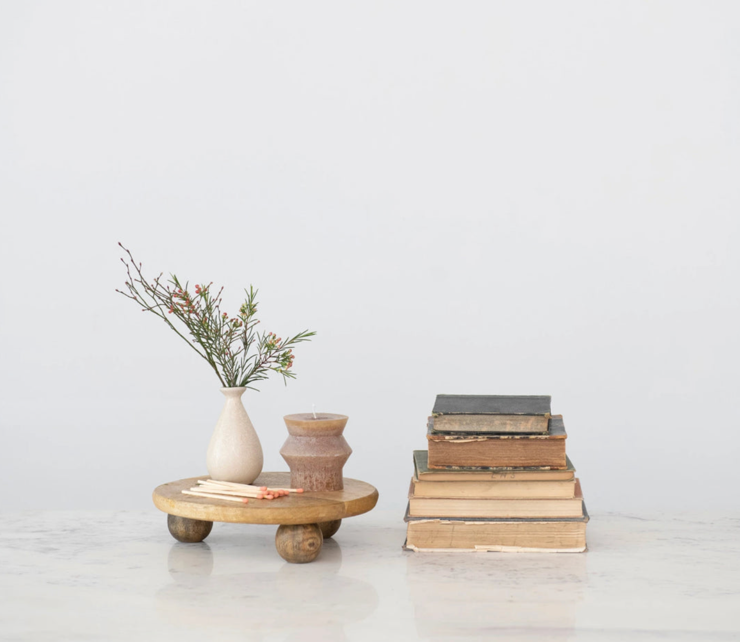 These collections of serving pieces are a must-have for every kitchen for those who love to cook and serve delicious food. They can find the ideal dishes for every table in classic white, vibrant colors, or modern patterns. The serving pieces come in various shapes, sizes, and materials, such as ceramic, stoneware, porcelain, or glass. They can create their unique style by mixing and matching them or choose a matching set for a coordinated look. These serveware are not only picture-worthy, but also durable, microwave-safe, and dishwasher-safe. These collections of serving pieces will make every meal more fun and memorable, whether they are hosting a dinner party, a family gathering, or a casual brunch. This 9.75-inch round mango wood pedestal has a natural beauty and charming design adding a touch of rustic elegance to any table setting. Its warm natural tones and unique grain patterns bring a sense of earthiness and warmth to any farmhouse, rustic, and bohemian space. Use this versatile pedestal to display and serve any favorite desserts, appetizers, or even as a decorative centerpiece. Made of mango wood.