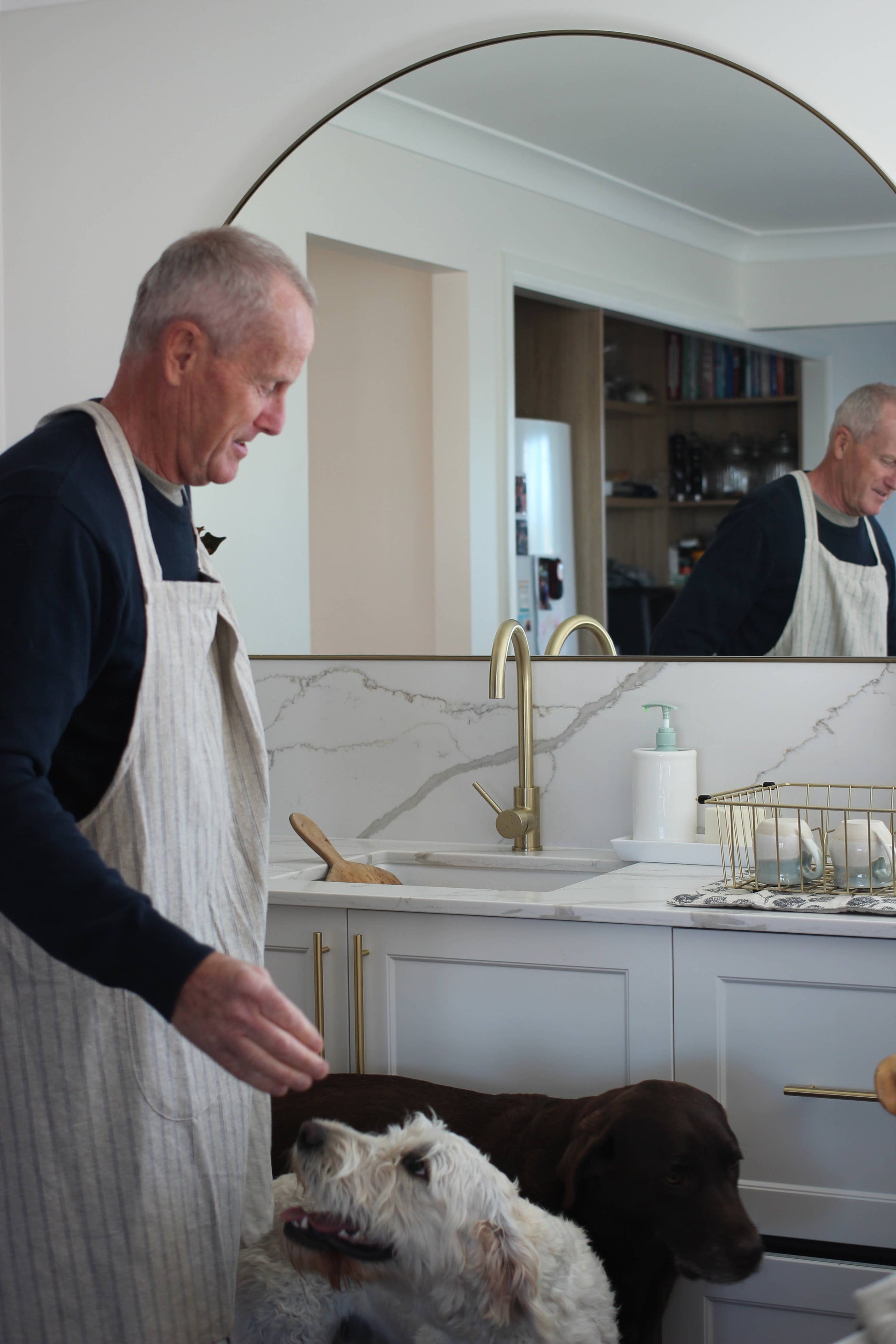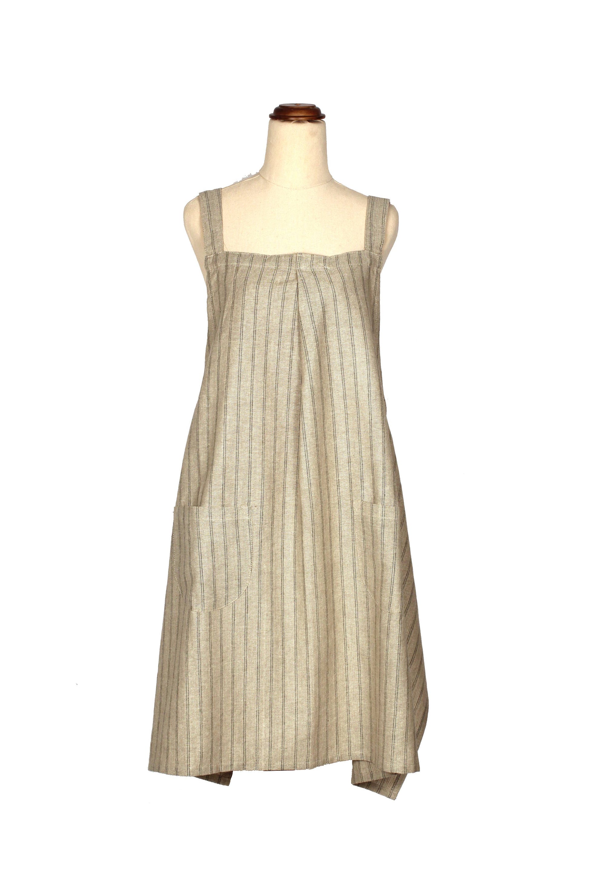 Apron Provincial Stripe Burnt Olive- Pinafore
