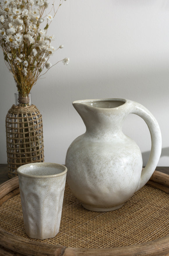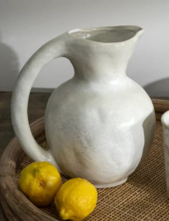 This vintage-inspired ceramic pitcher offers a striking silhouette, a sweeping handle and an opening shaped for the perfect pour. Boasting an artful hand-painted finish, the Ashen Pitcher is food-safe and part of Accent Decor’s new kitchen collection. Holds 90 oz