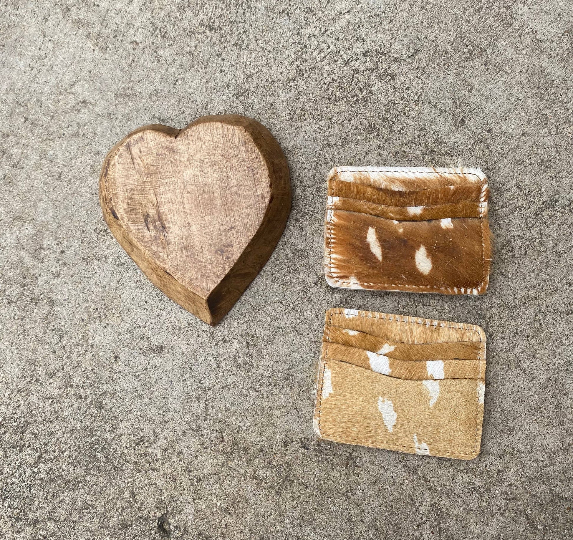Our popular cowhide credit card wallets with card slots. Each item is hand made and will have natural cowhide colors.