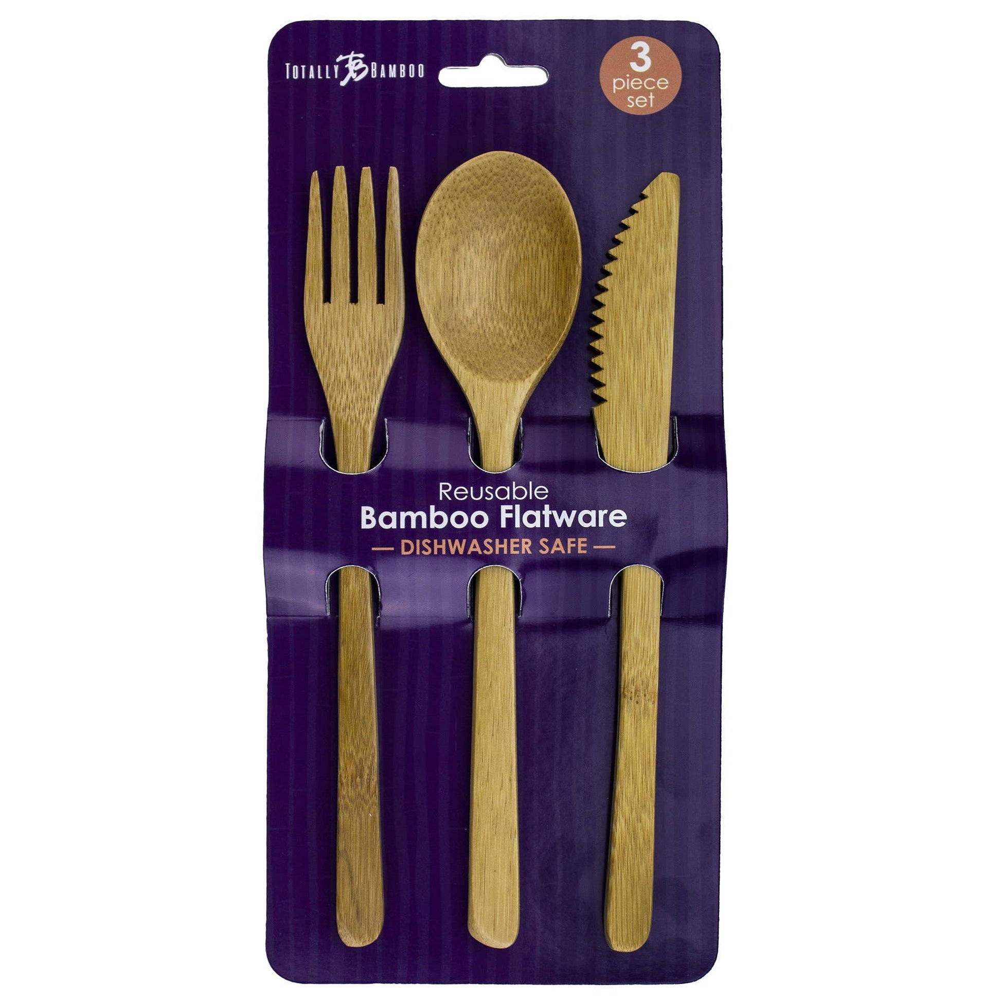 Our bamboo flatware has seen a huge surge in popularity for shoppers looking to live a more sustainable lifestyle. Our bamboo flatware is crafted from a single piece of bamboo for a durable, reusable piece. They're also dishwasher safe, making them even easier to reuse! Perfect for packing in school lunches, work lunches, eating on the go or for barbecues and picnics. Set includes one place setting of a fork, spoon and knife.Measures 8"