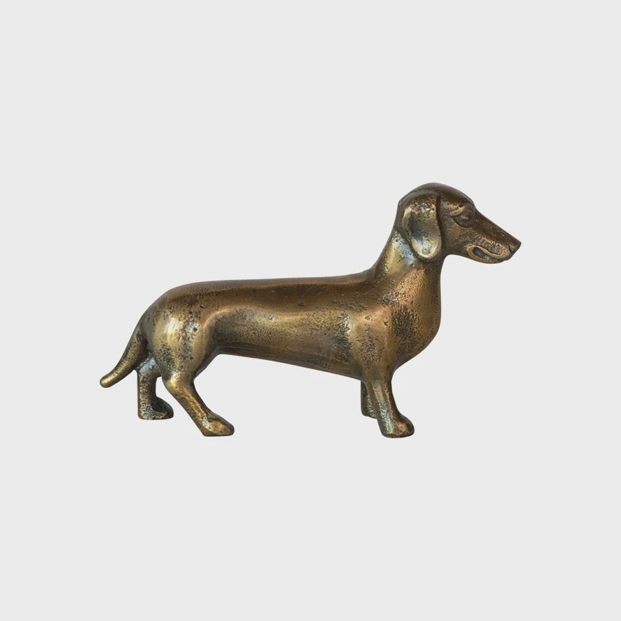 6-1/2"L x 1-1/2"W x 3-1/2"H Cast Aluminum Dachshund, Antique Brass Finish