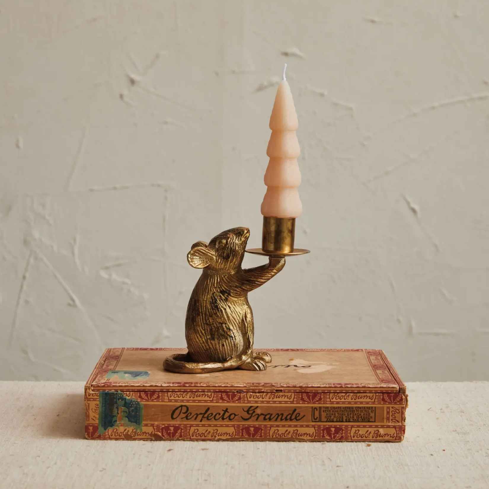 Cast Aluminum Mouse Taper Holder, Antique Gold Finish