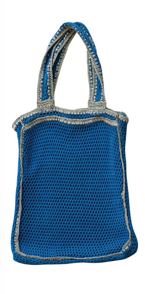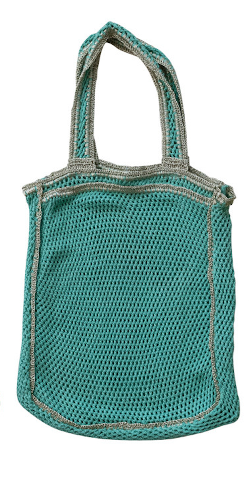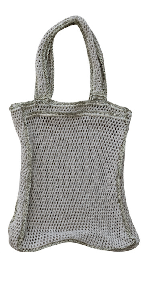 14"L x 16"H Cotton Blend Crocheted Tote Bag w/ Metallic Silver Trim, 4 Colors