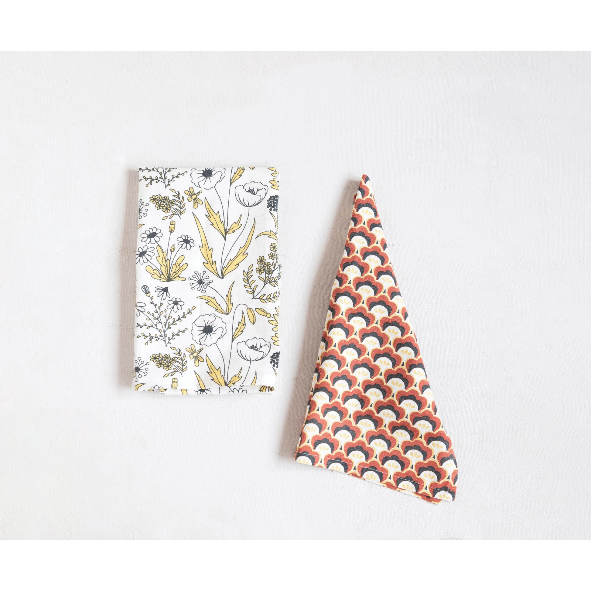 28"L x 18"W Cotton Tea Towel w/ Floral Pattern, Multi Color, 2 Styles