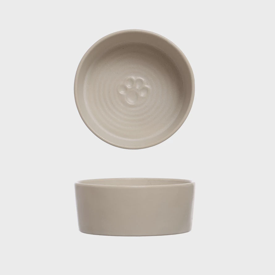 4 Cup Debossed Stoneware Pet Bowl w/ Paw Print, Reactive Glaze, White