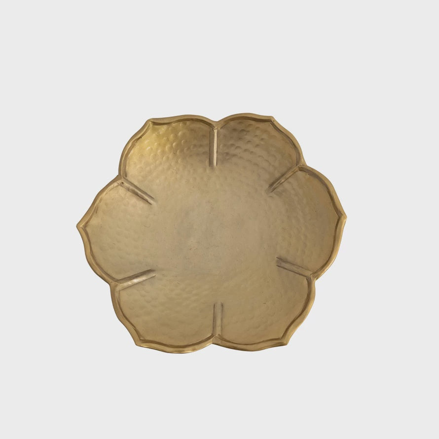8-1/4" Round Decorative Hammered Metal Flower Shaped Bowl, Gold Finish