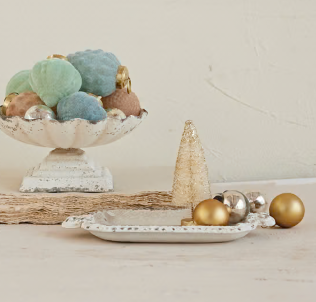 Decorative Painted Cast Iron Tray w/ Embossed Edge & Handles
