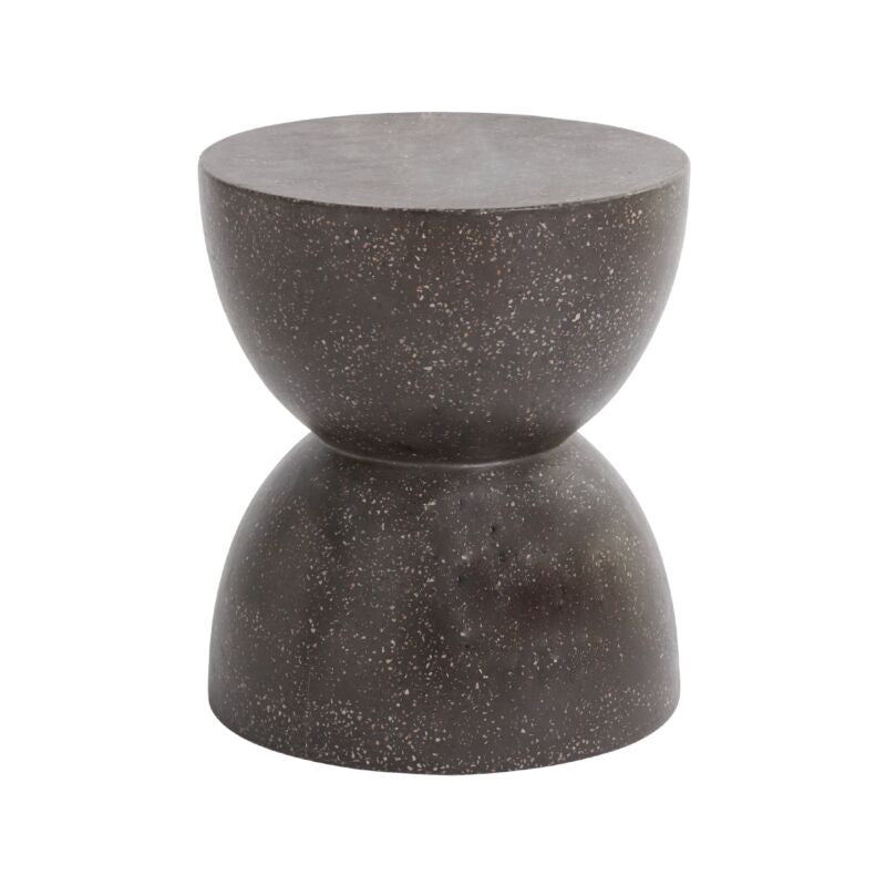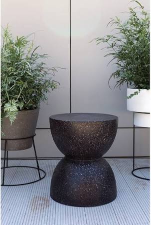 In modern black terrazzo and a unique silhouette, the Drew Stool is water safe and frost-resistant. Designed for outdoor use, this versatile piece can be used as a stool, end table, or plant stand.