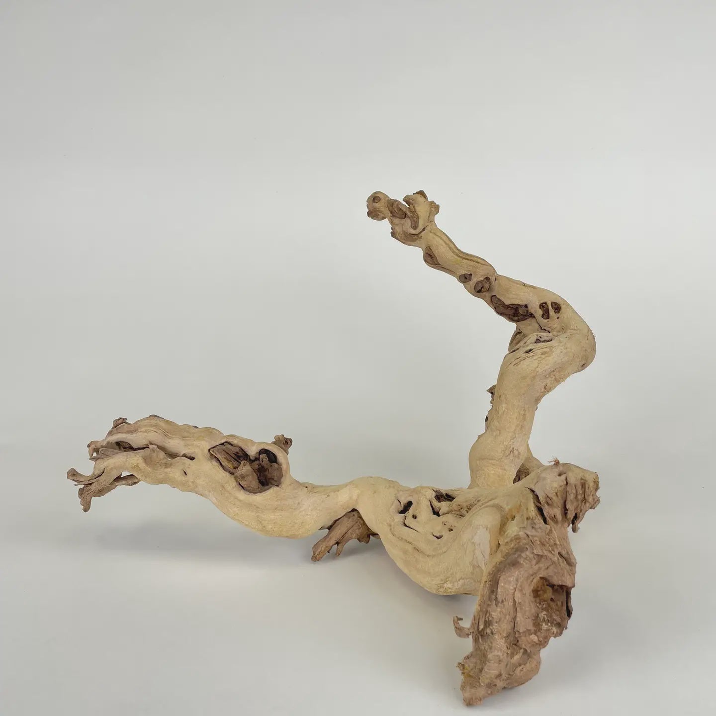 Our 12" sandblasted grapewood showcases the beautiful twists and turns of a grapevine and is the perfect shocase for home decor tables and jewelry trees. - 12" total length, width varies per piece - each grapewood is unique - sandblasted for a beautiful finish