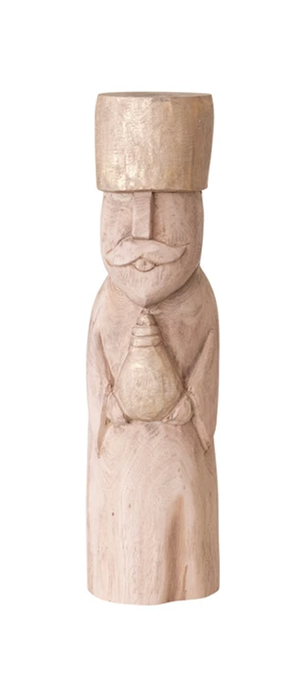 This set of 3 hand-carved mango wood wise men sculptures with natural and gold finish is a stunning and meaningful addition to the home decor. Made from sustainable mango wood, these men showcase the natural beauty and texture of the wood grain. The gold finish adds a touch of shine and contrasts to the natural wood color. Each wise man has a unique expression and posture, holding gifts symbolizing their reverence and gratitude.