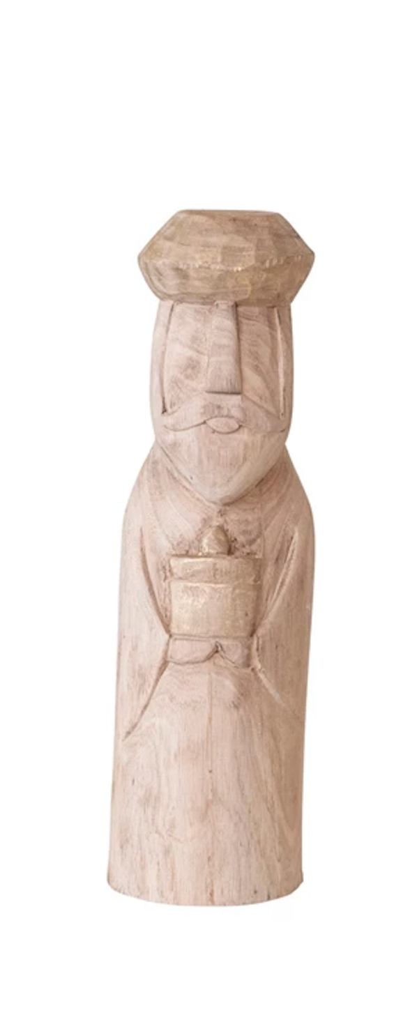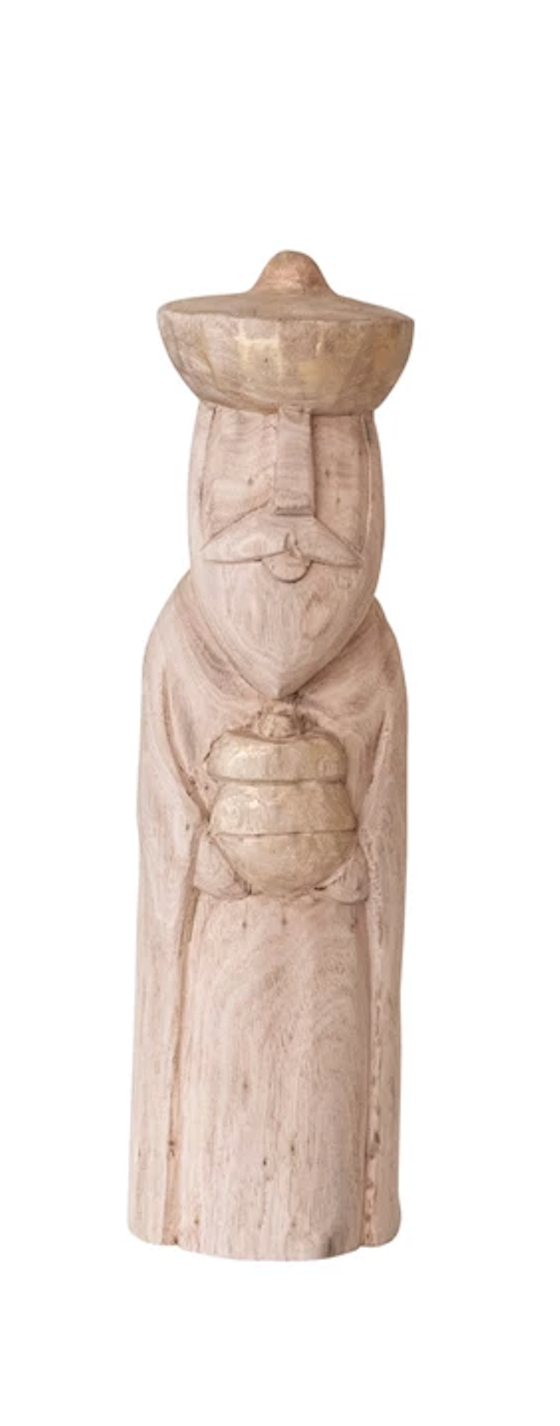 Hand-Carved Mango Wood Wise Men, Natural & Rubbed Gold Finish