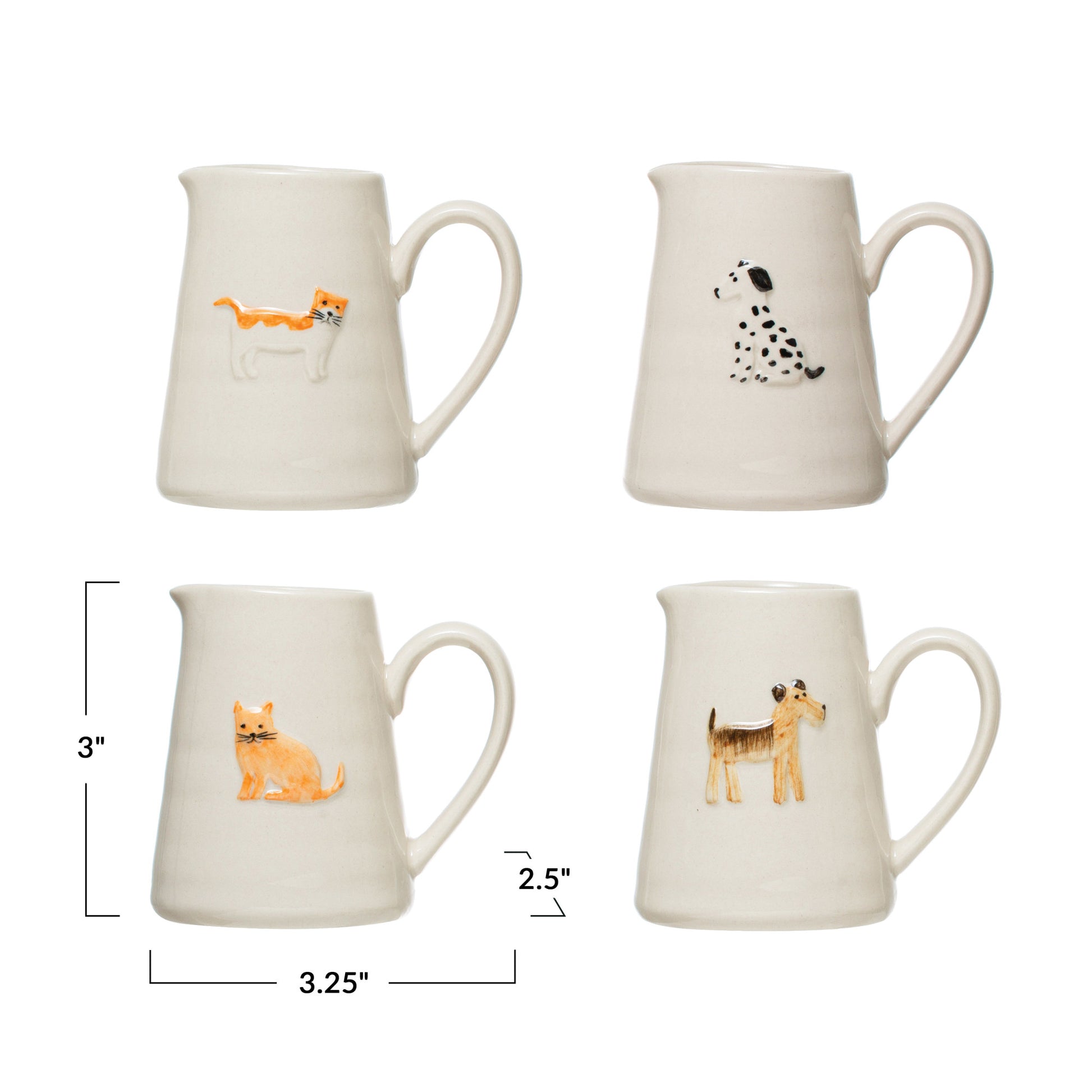 Add elements of countryside decor to your home with these beautiful pitchers featuring embossed animal designs. These mugs serve as excellent table decor, perfect for serving guests in style. They look great on the coffee table with other country decor elements, creating an eye-catching decorative accent. Crafted out of stoneware, these pitchers will be a durable addition to the kitchen. Great for pouring milk and cream, or even as decorative storage for pens, candies, or other storage items. Comes in 4 styles.