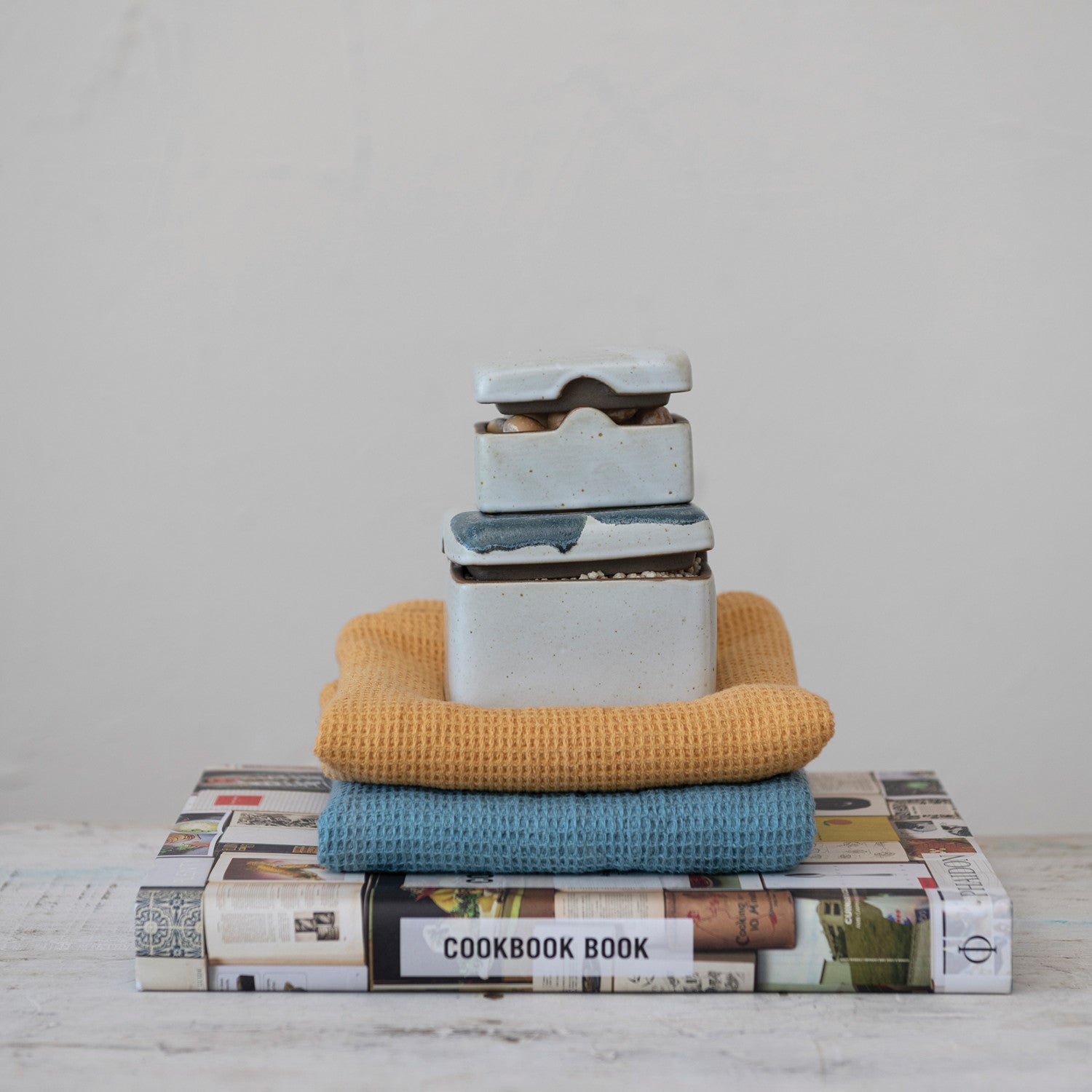 Hand-Painted Stoneware Box w/ Lid, Reactive Glaze, White & Black