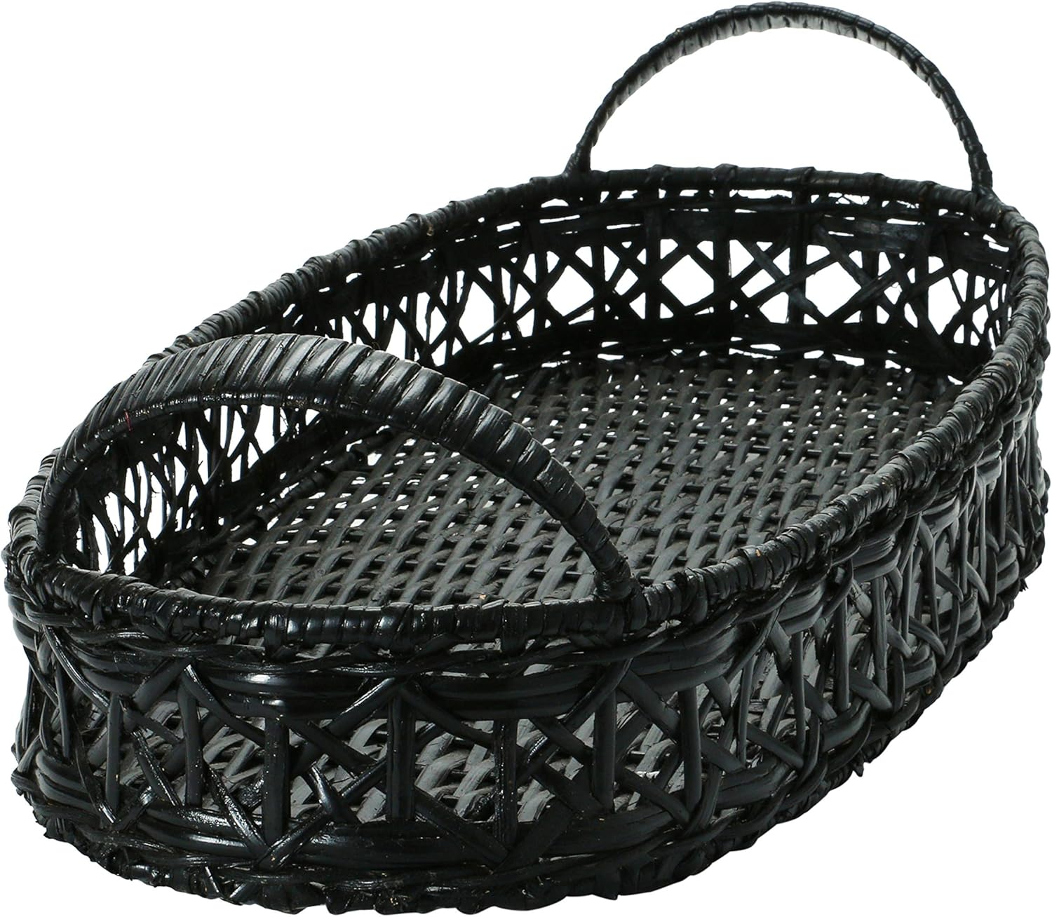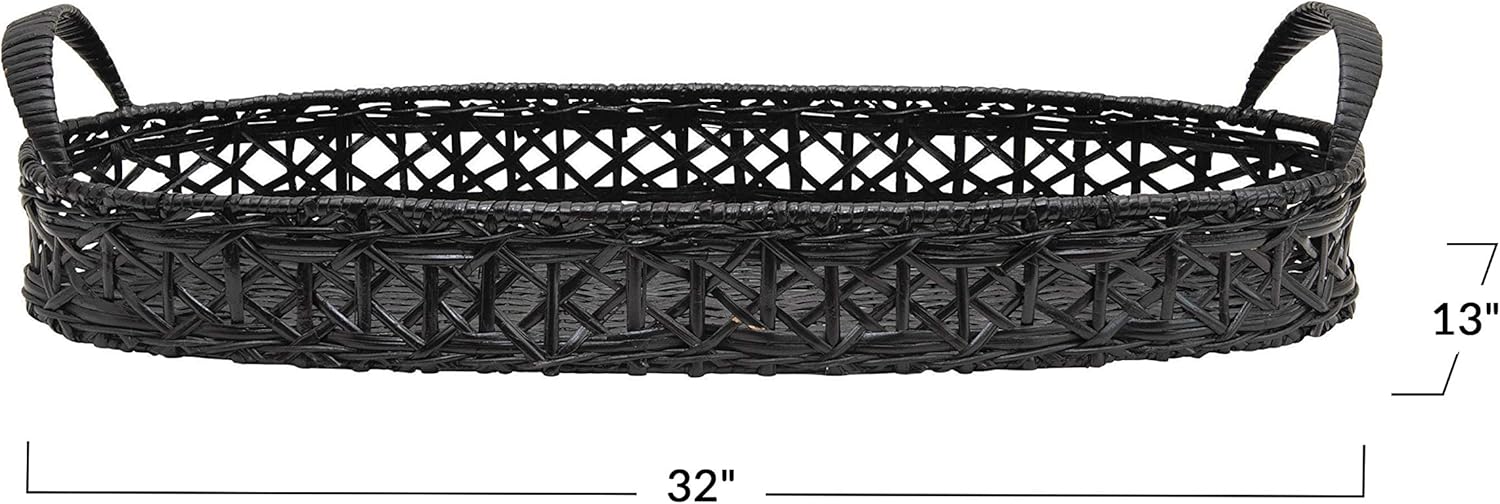 32"L x 13"W Decorative Hand-Woven Rattan Tray w/ Handles, Black