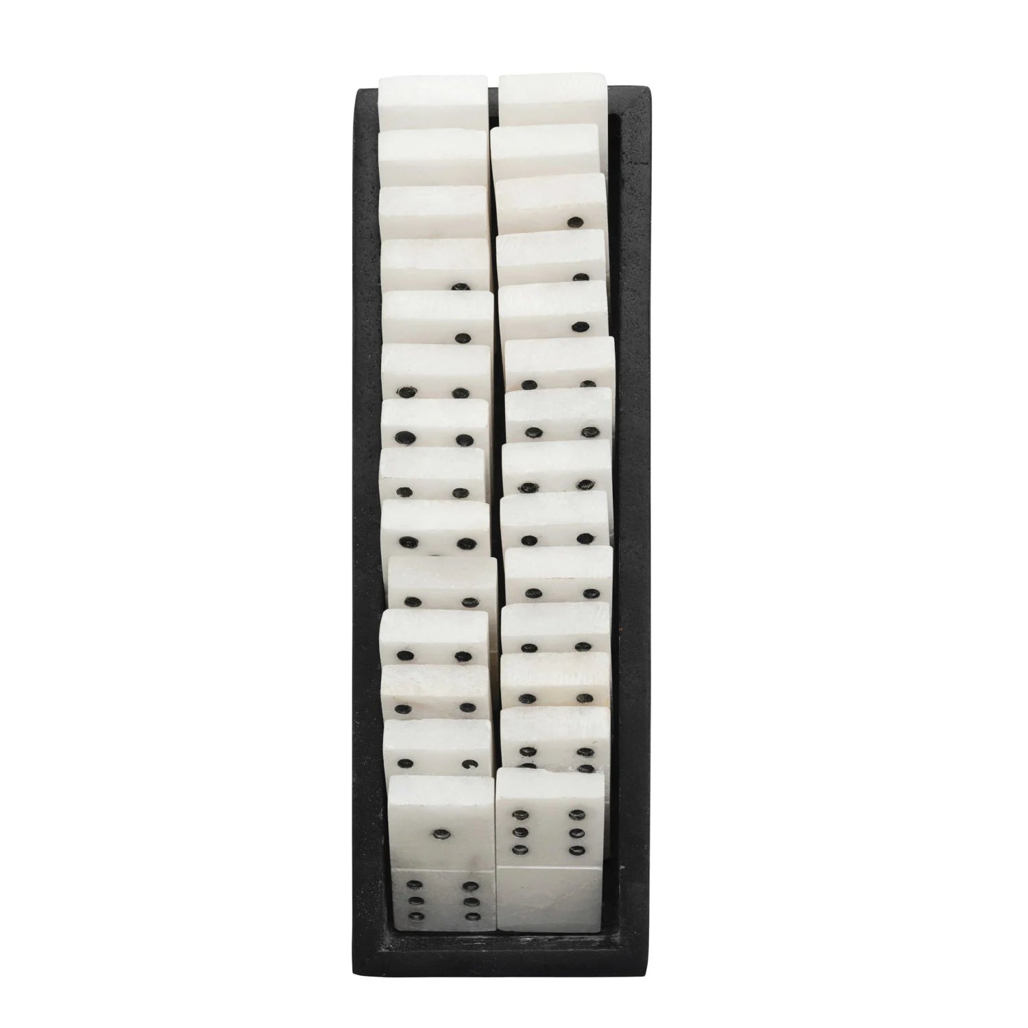 2-1/4"L x 1"W Handmade Alabaster Dominoes in 9"L x 3"W Soapstone Box, White & Black, Set of 29