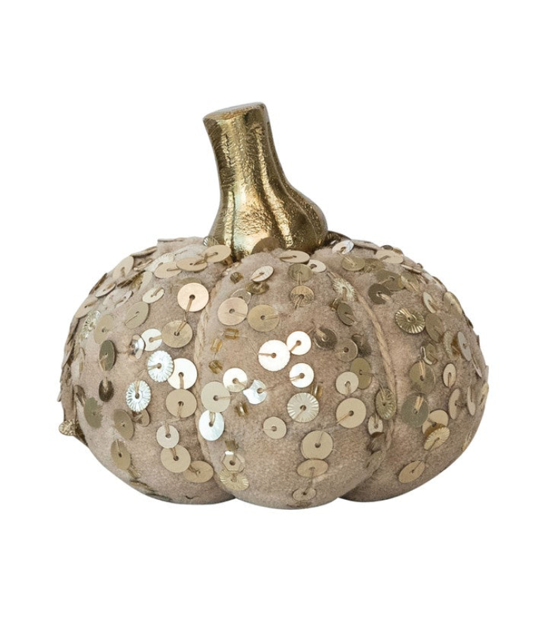 Handmade Cotton Velvet, Sequin/Bouclé & Aluminum Pumpkin