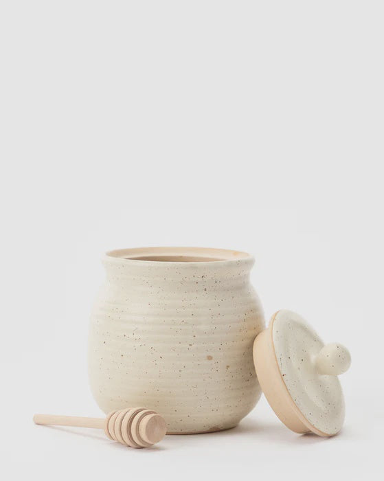 Stoneware Honey Jar w/ Wood Honey Dipper