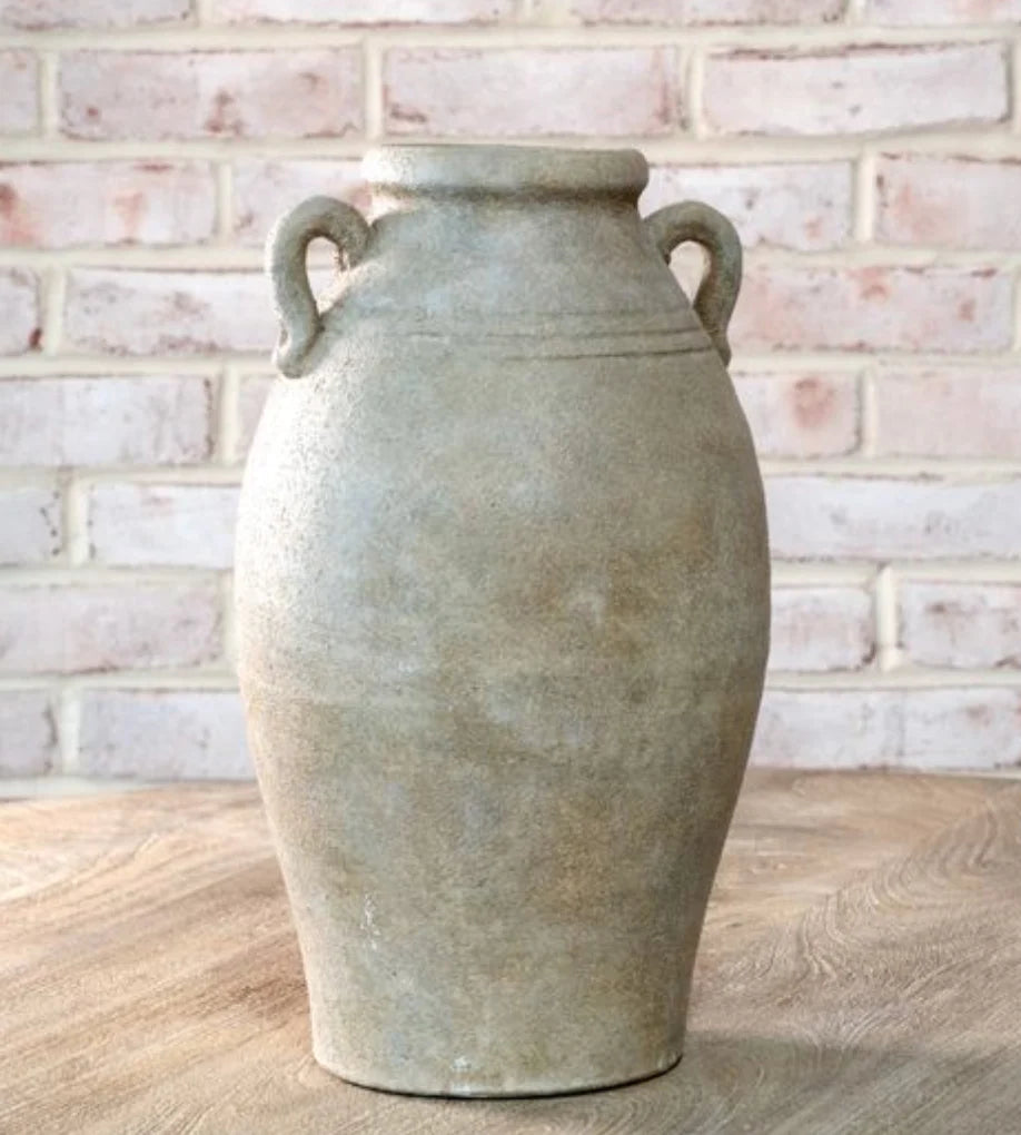 Add a touch of charm with our Natural Wash Handle Vase. Its rustic, natural finish and jug handles make it a unique centerpiece or decor piece.
