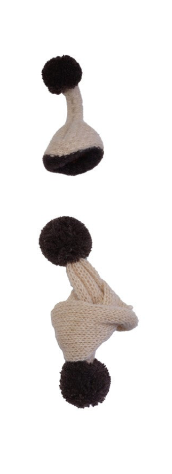 7"L Knit Fabric Hat & Scarf Bottle Topper w/ Pom Poms