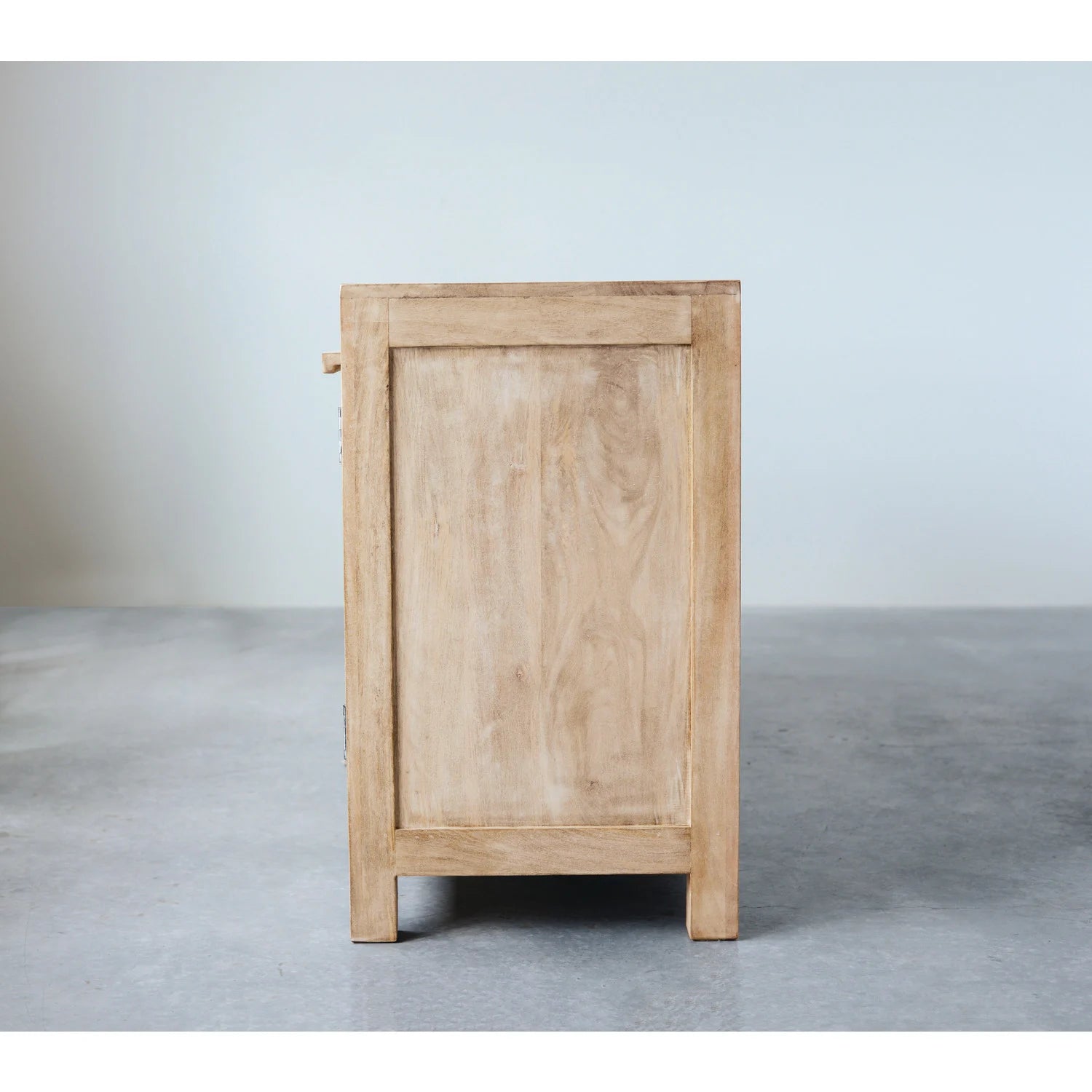 This beautiful cabinet is perfect for any room of your home. The light brown finish is complimented with 4 cane doors. You will have ample room to place items in partial view.