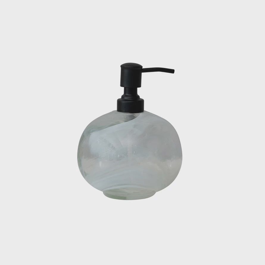 5" Round x 6-1/4"H Marbled Glass Soap Dispenser w/ Pump, White (Each One Will Vary)