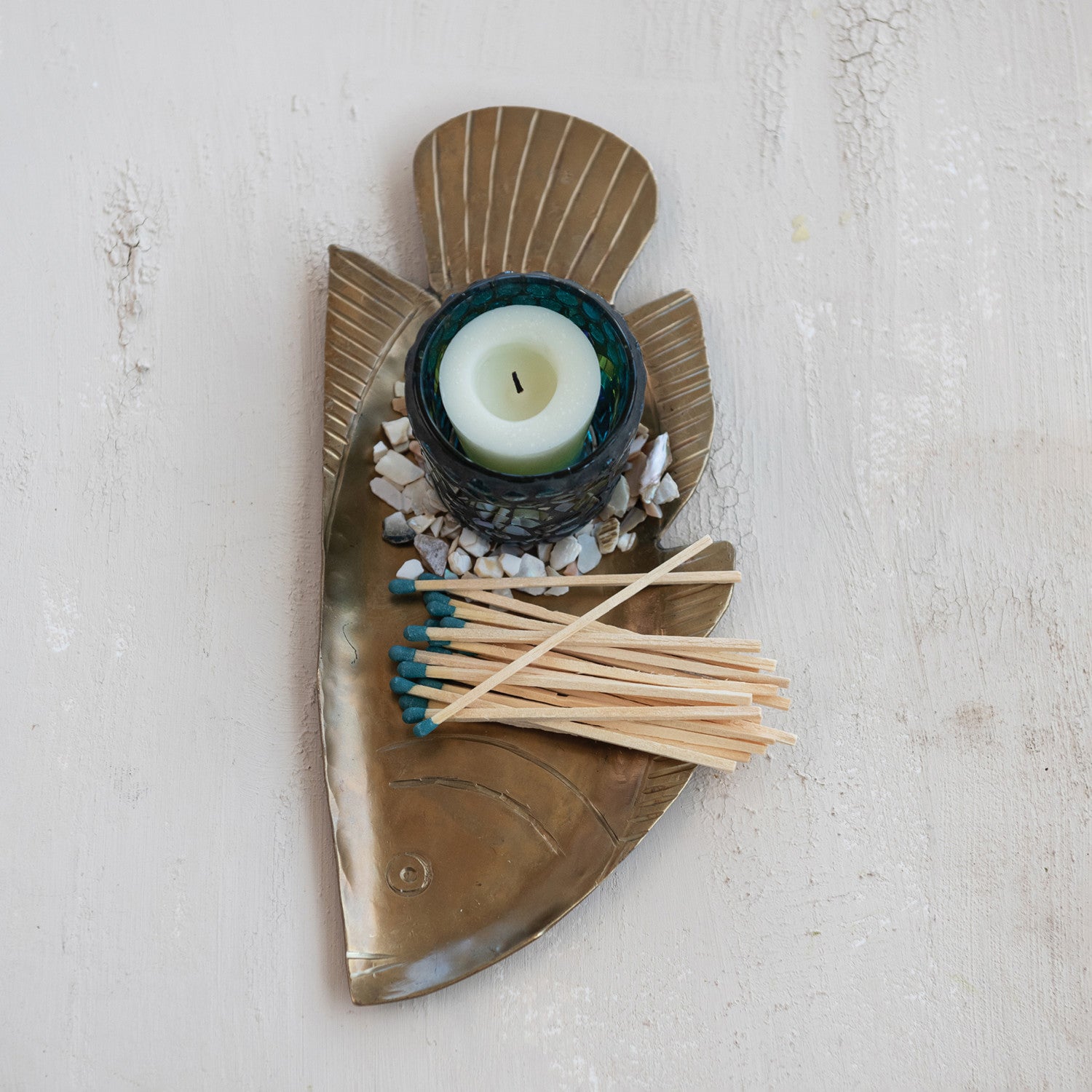 10-1/2"L x 4-1/2"W Metal Fish Shaped Tray, Antique Gold Finish