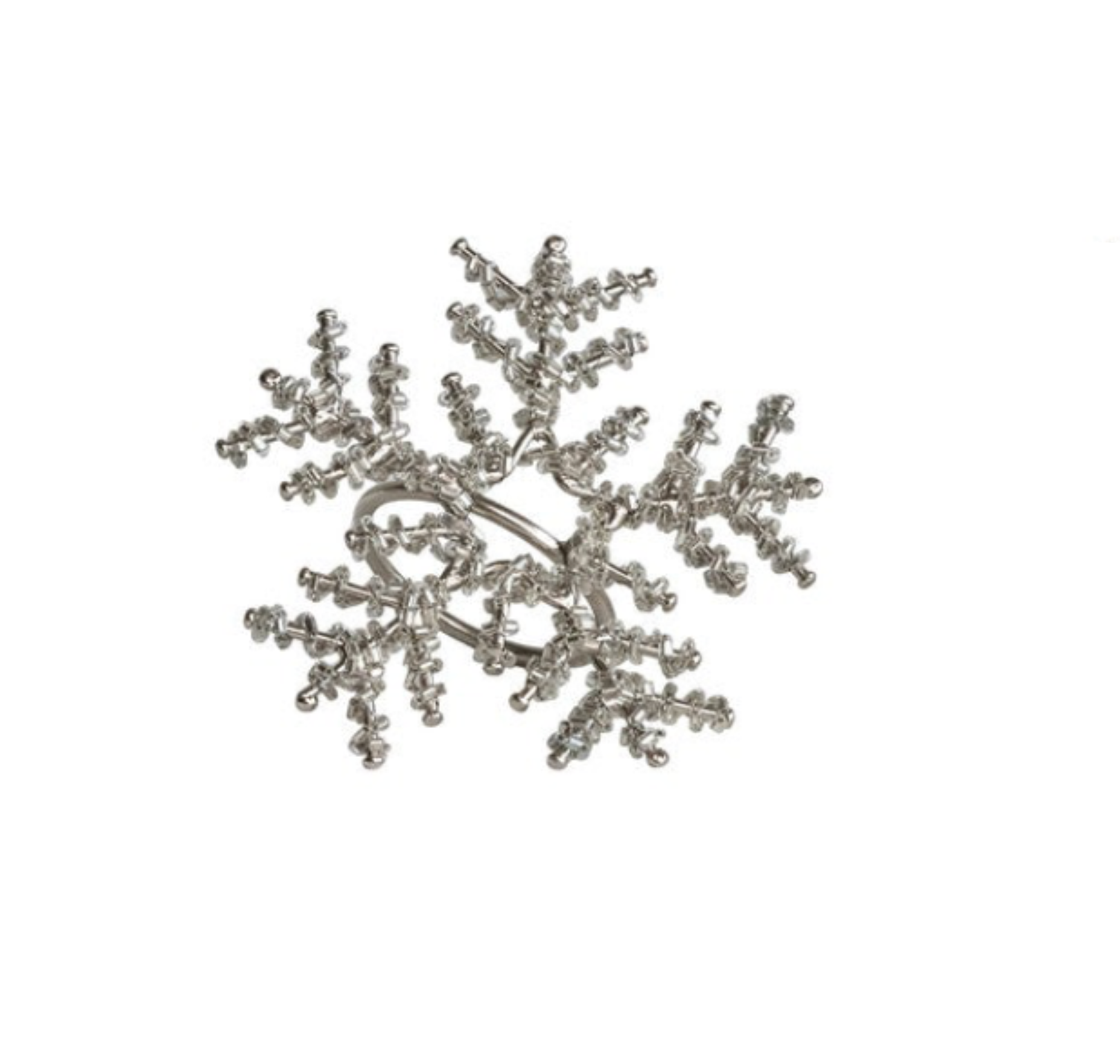 Metal & Glass Beaded Snowflake Napkin Rings, Silver Finish, Set of 4 Tied w/ Jute