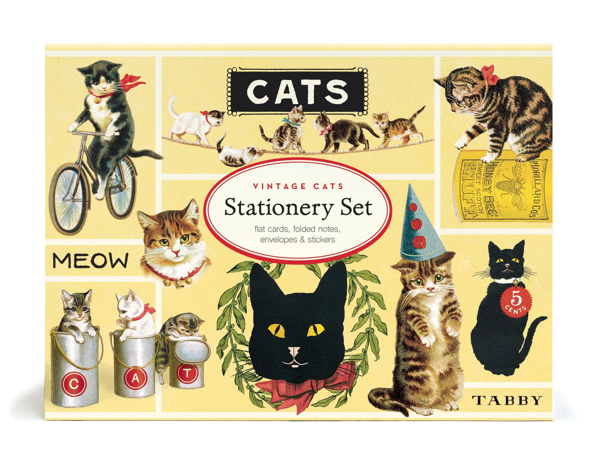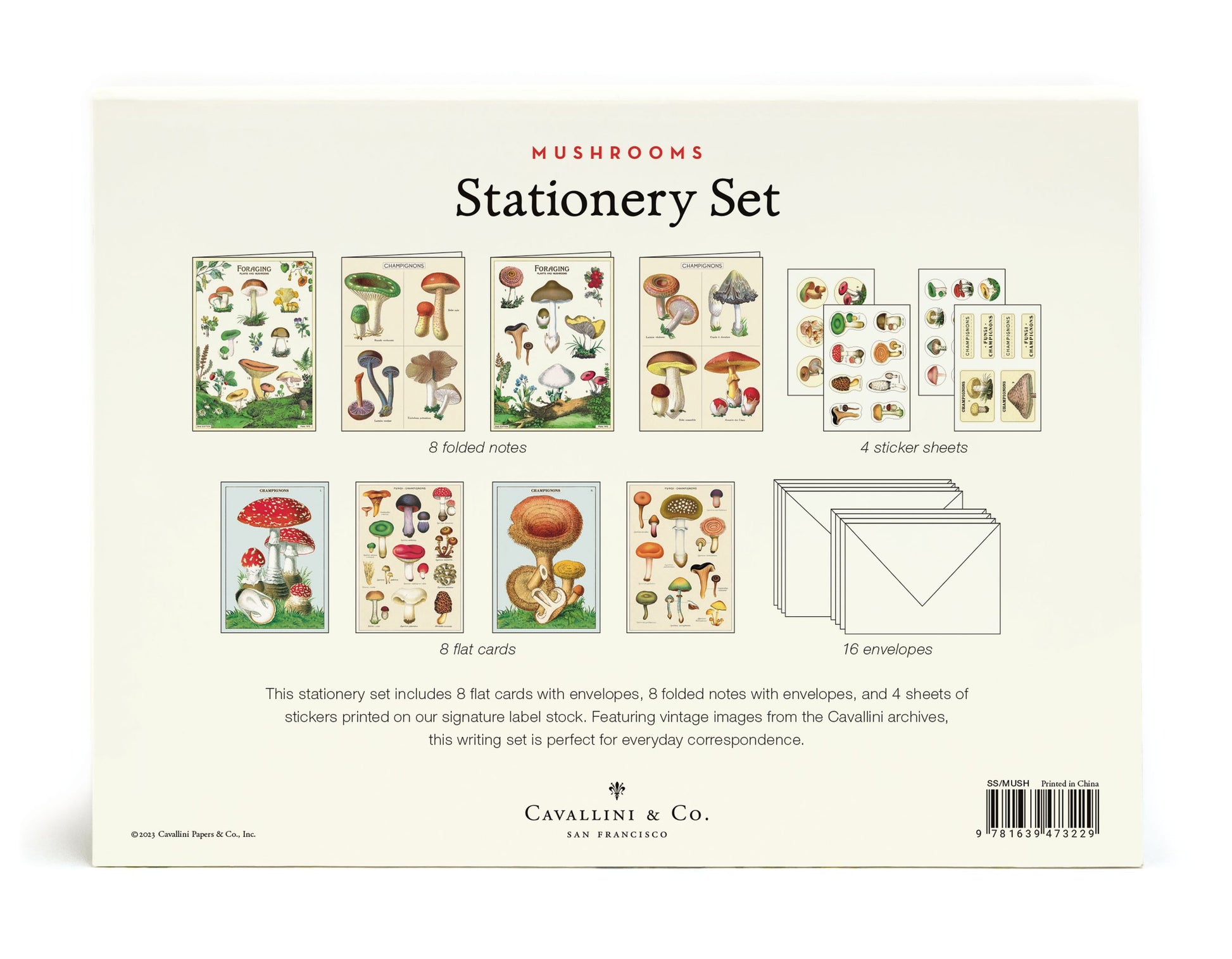 These Stationery Sets include 8 flat cards with envelopes, 8 folded notes with envelopes, and 4 sheets of stickers printed on our signature archival label stock. Featuring vintage images, this writing set is perfect for everyday correspondence.
