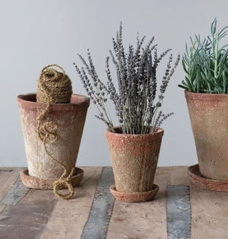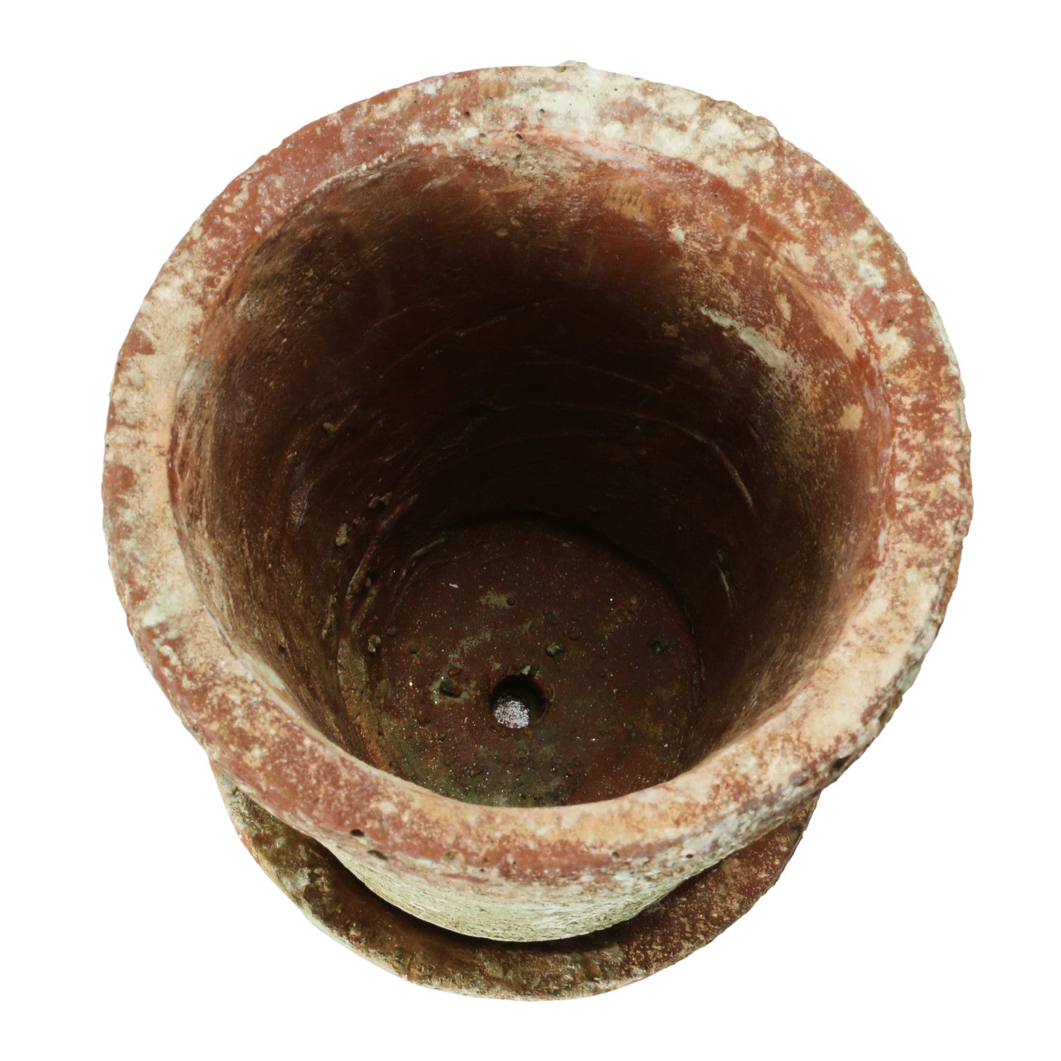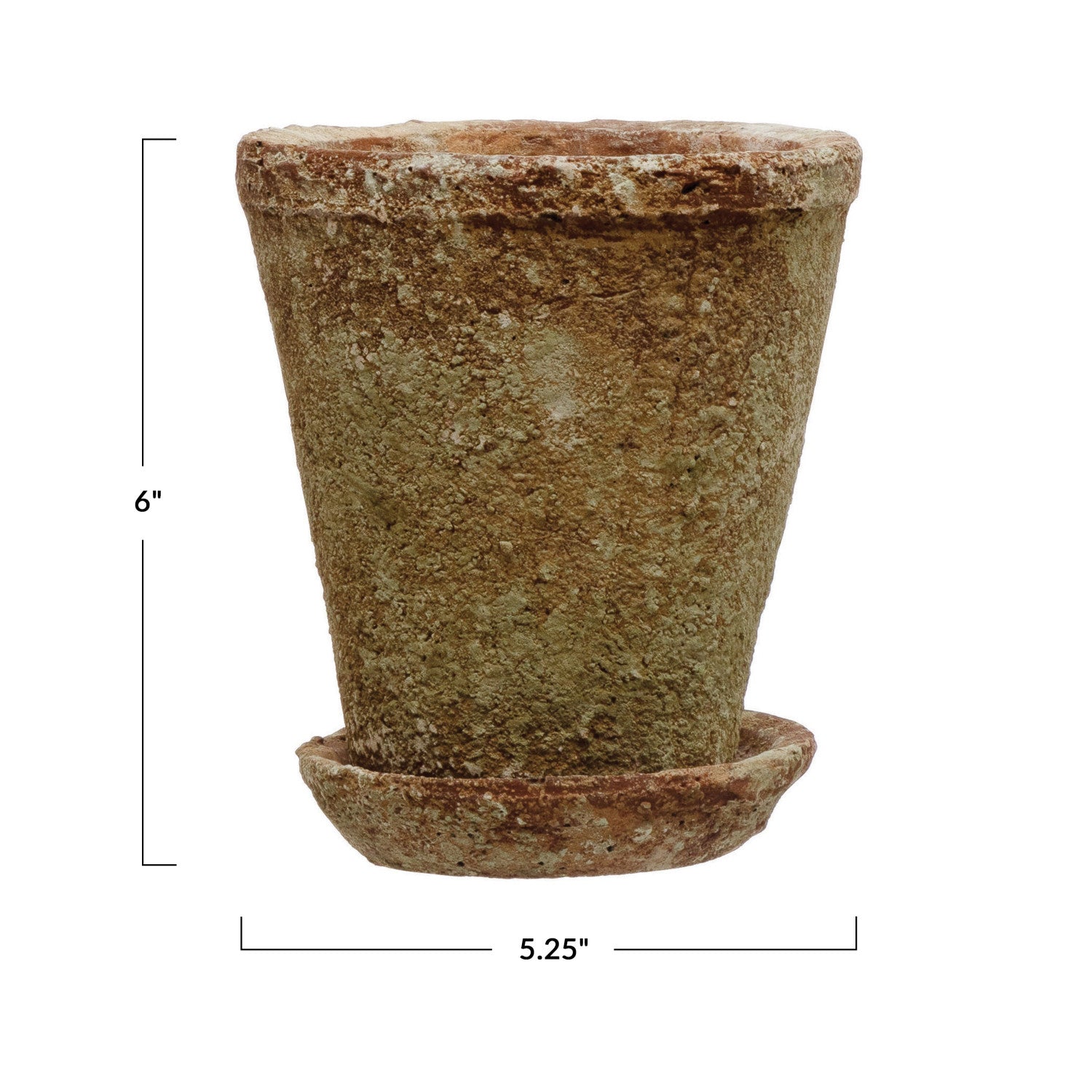 Cement Planter w/ Saucer, Distressed Terra-cotta Finish