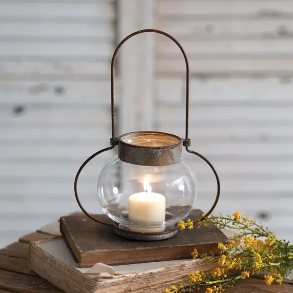 Simple yet charming, our Portsmouth Lantern will bring an illuminating touch to a room. Item features a distressed metal finish and a glass bauble chimney. The opening for a candle is 2¾'' dia.