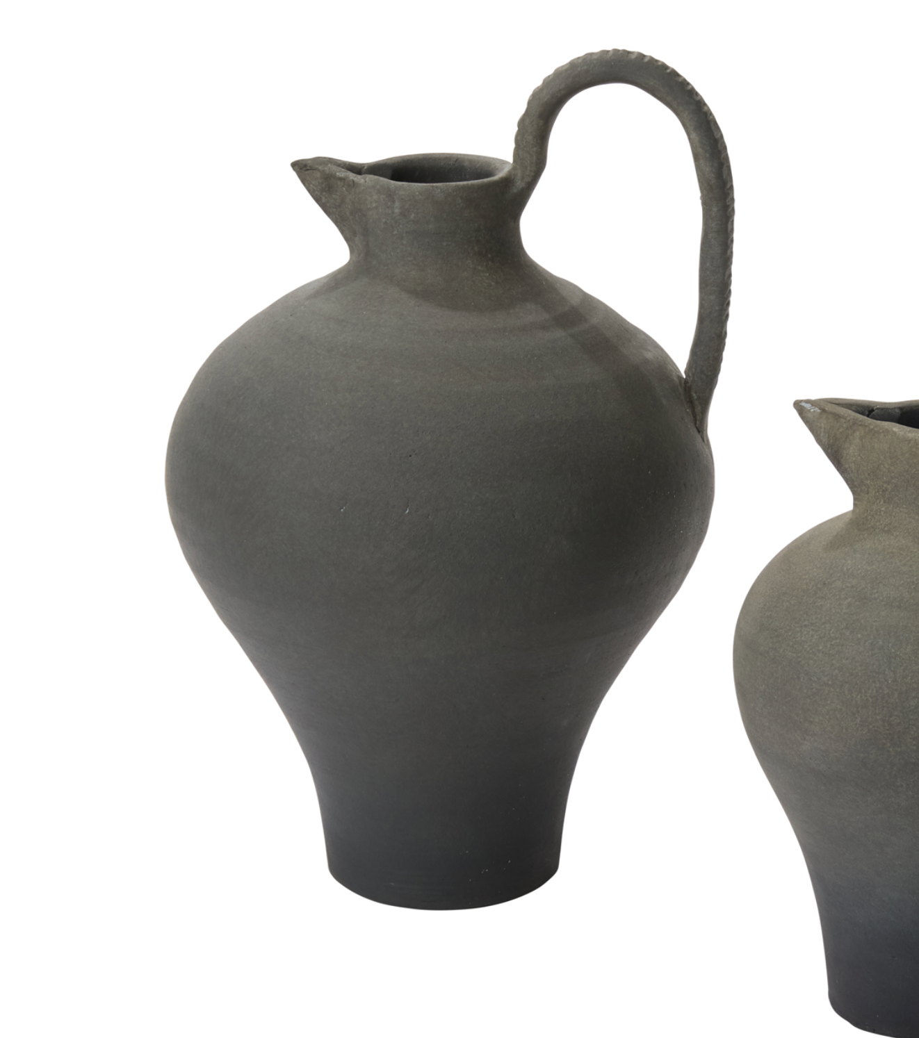 Dramatic curves and a statement handle draw all attention to the Ravine Jug. This handmade terracotta pitcher evokes a sense of ancient beauty and modern simplicity.