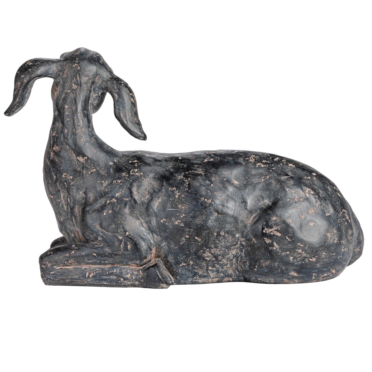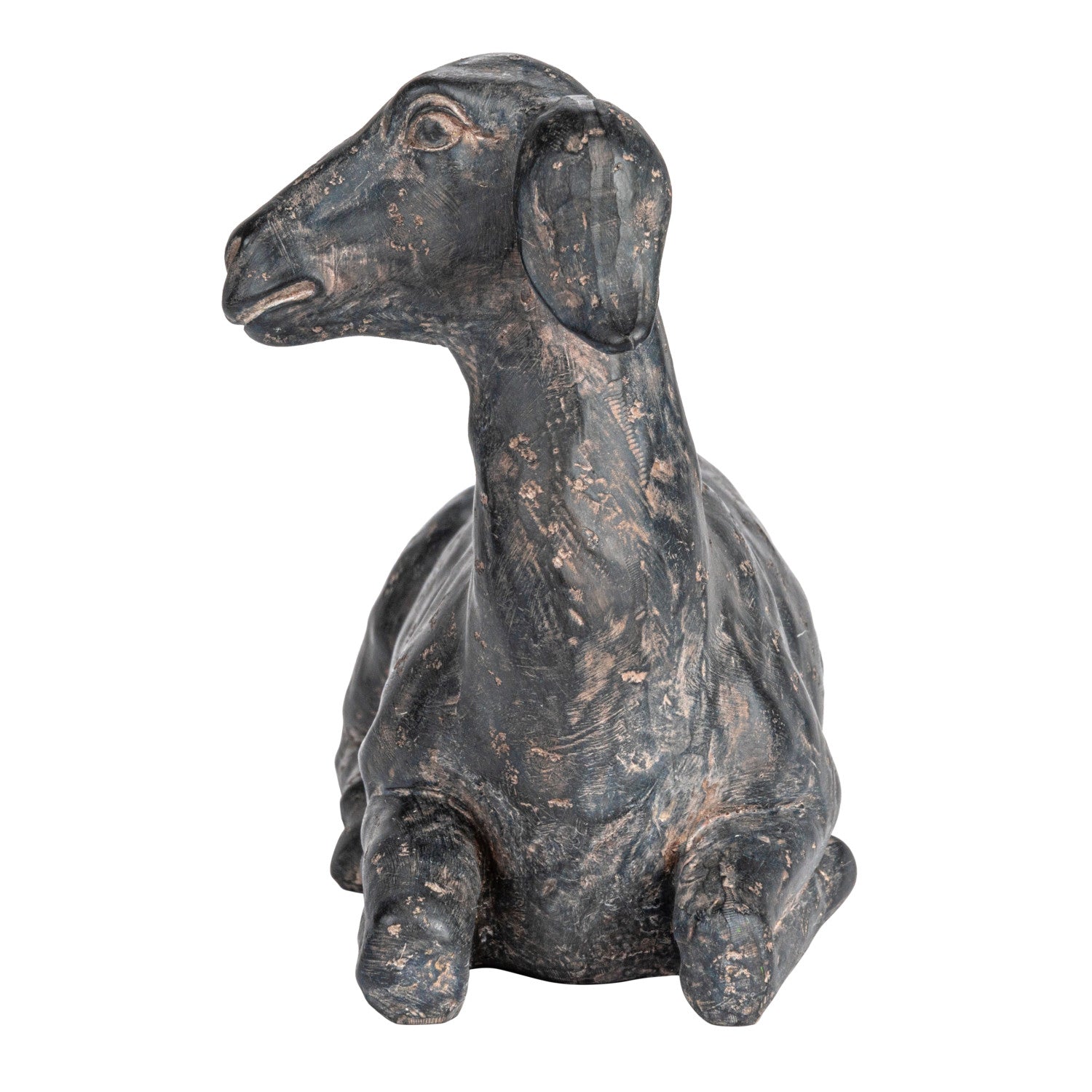 8-3/4"L x 4"W x 5-3/4"H Resin Lying Goat, Cast Iron Finish, Black