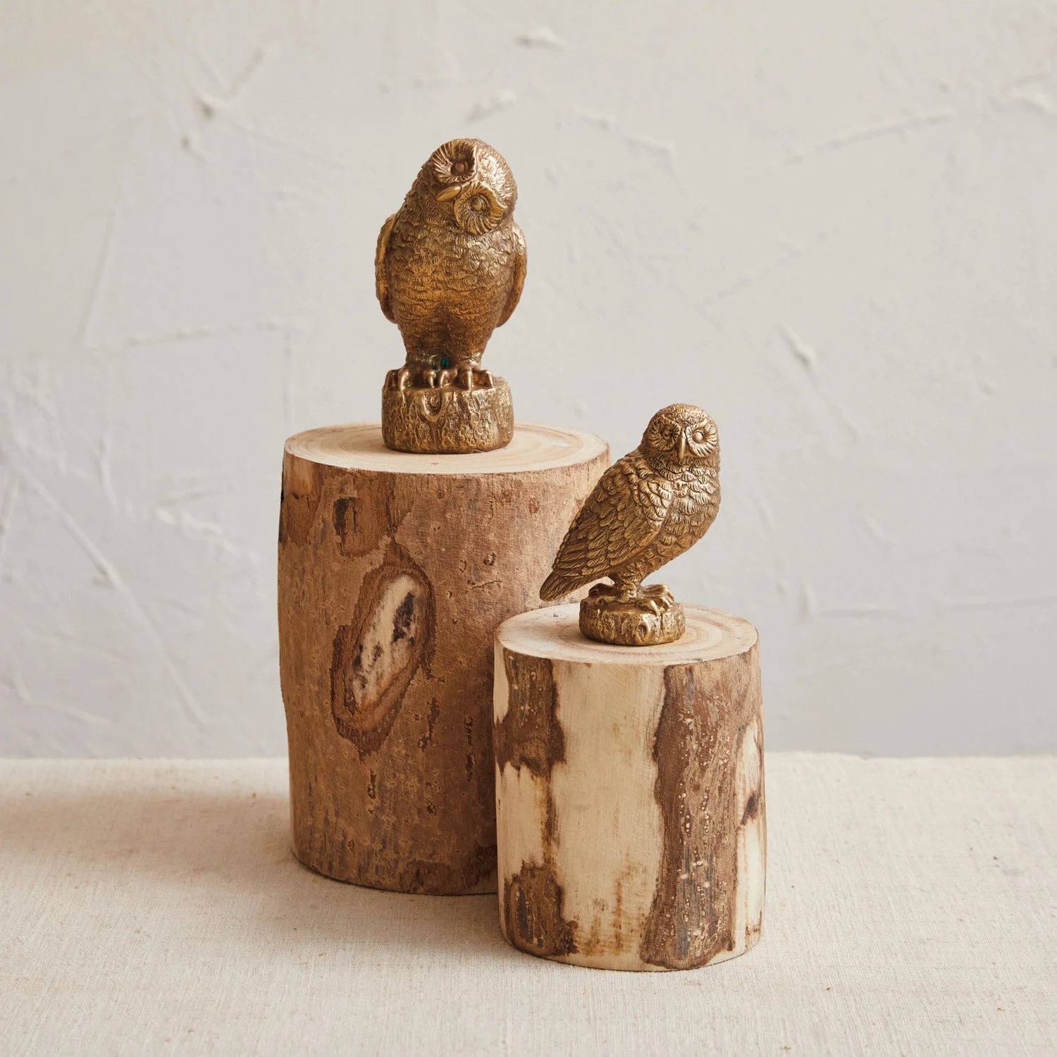 This antique gold resin owl with base is a beautiful and convenient way to decorate the home. It features a resin owl with an antique gold finish and a base that gives it a vintage and majestic look, making it look like a real owl. It is ideal for adding some wisdom and sophistication to the home, where it can create a refined and classy atmosphere. The owl is made of polyresin that is durable, lightweight, and easy to clean.