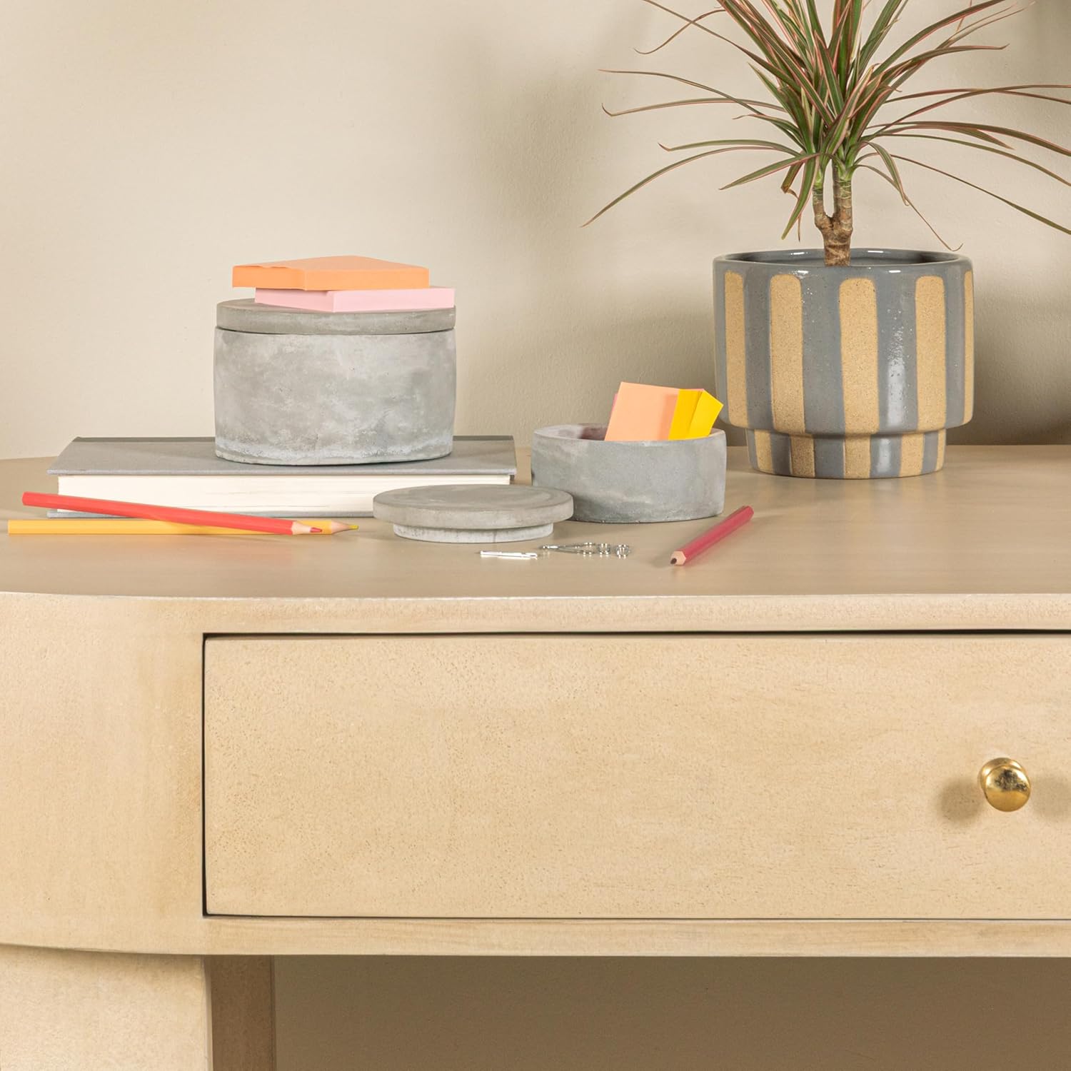 Round Decorative Cement Boxes with Lids