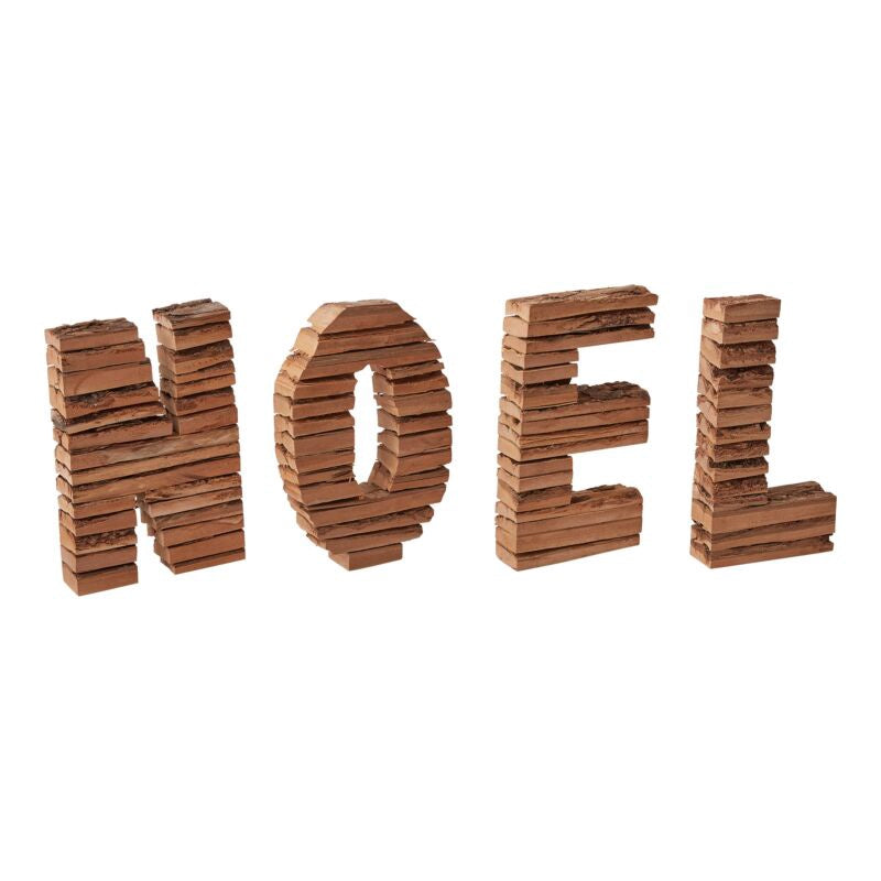 The Slatwood Noel Sign is a cheery set of letters to be displayed on a mantle or tabletop. These layered wooden letters can be styled with fresh cut greenery and tree figurines to create a unique Christmas display.