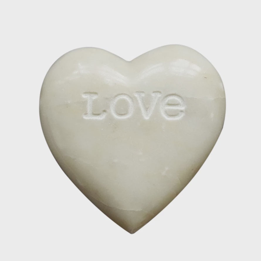 4"L Soapstone Heart w/ Engraved "Love", White (Each One Will Vary)