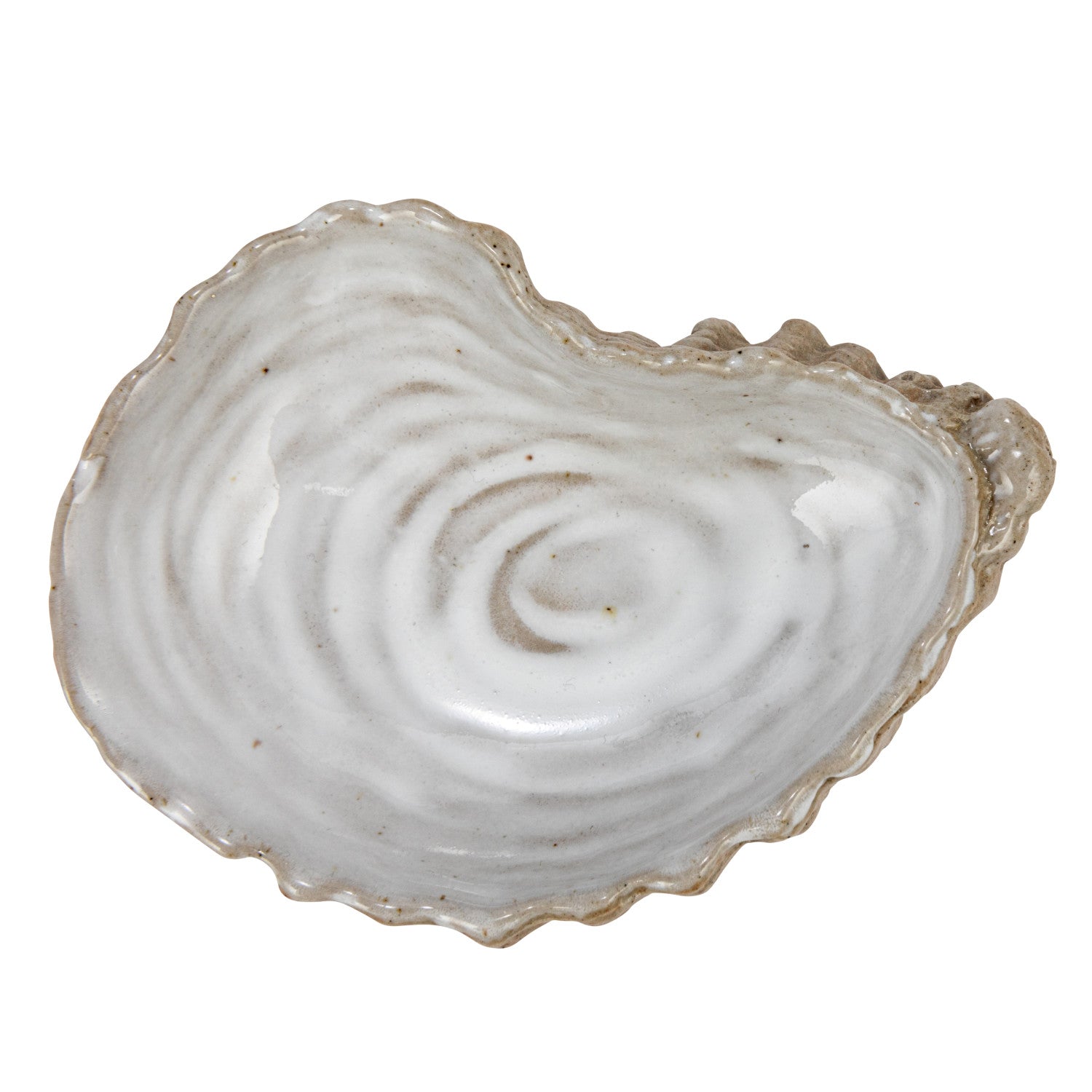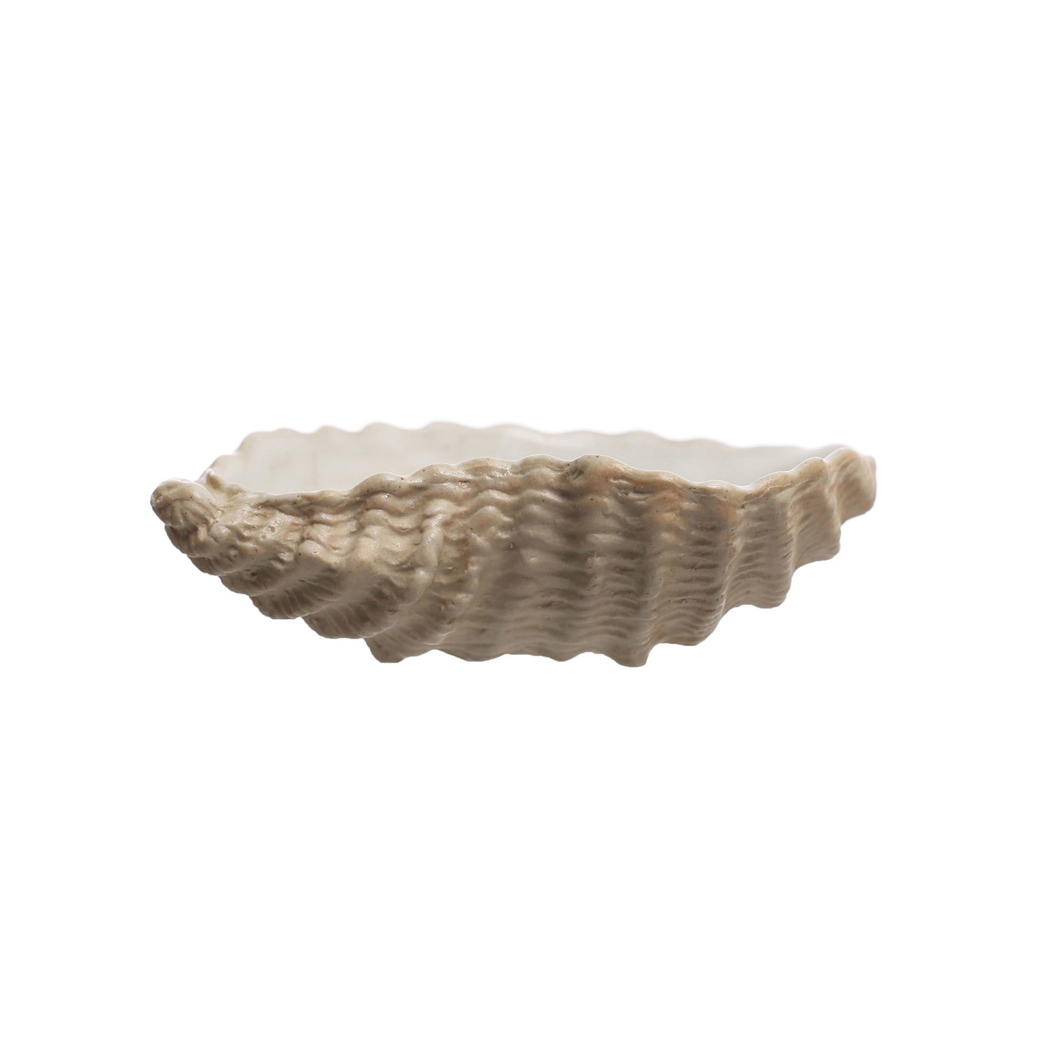 Stoneware Shell Shaped Dish, Reactive Glaze, White