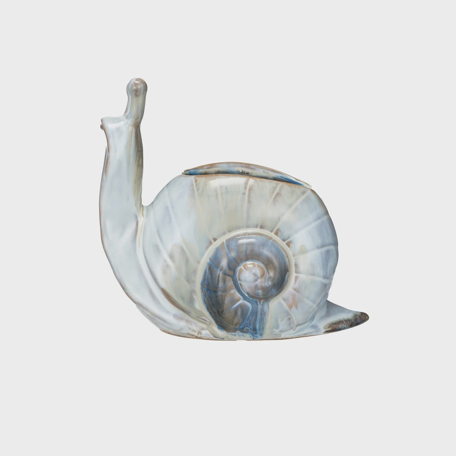 Add some charm and fun to the space with this Stoneware Snail Vase/Planter, Reactive Glaze, Multi Color. This vase/planter is made of high-quality stoneware that has a reactive glaze finish that creates a beautiful and varied pattern of multi colors on the surface of the vase/planter. The vase/planter has a snail shape with a hollow shell that can hold a 6-inch pot of the choice or a bouquet of flowers. Use it to display plants or flowers indoors or outdoors. It measures 7 inches in length, 4 inches in width, and 6.25 inches in height, making it a perfect size for any space. Each vase/planter is unique and will vary slightly in color and shape. This vase/planter is ideal for adding a French country, novelty, cottagecore, or garden style to the space. It is not only functional but also decorative. It will make the space look more inviting and cozy.