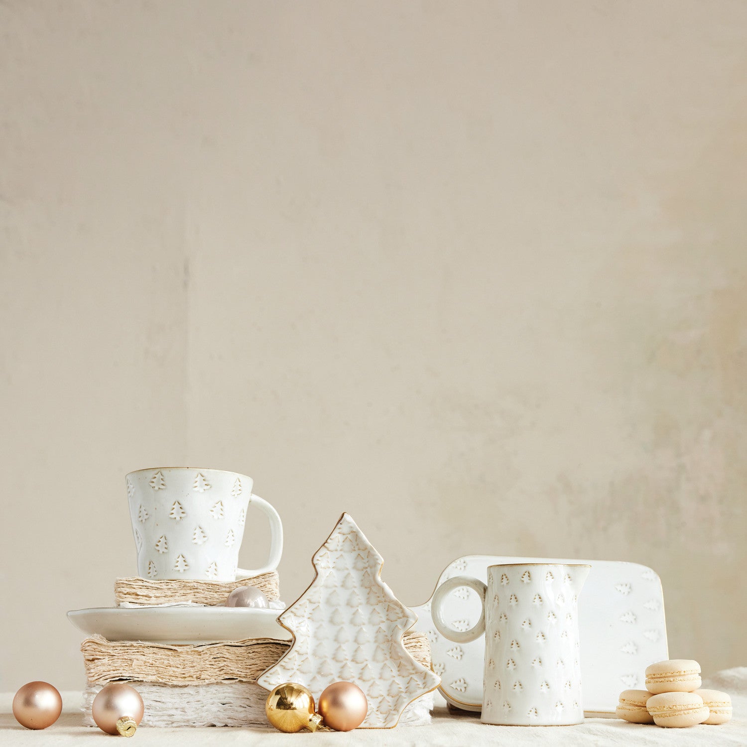 Stoneware Tree Shaped Plate w/ Trees & Gold Electroplating