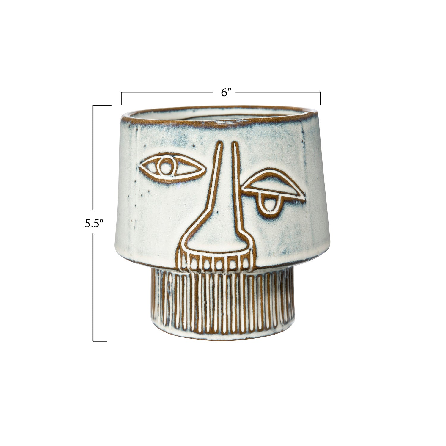 The abstract Picasso-style design on this stoneware vase will pair well with abstract wall Decor. Place on a table next to a set of abstract figurines. The reactive glaze finish creates a unique finish on each gorgeous vase.